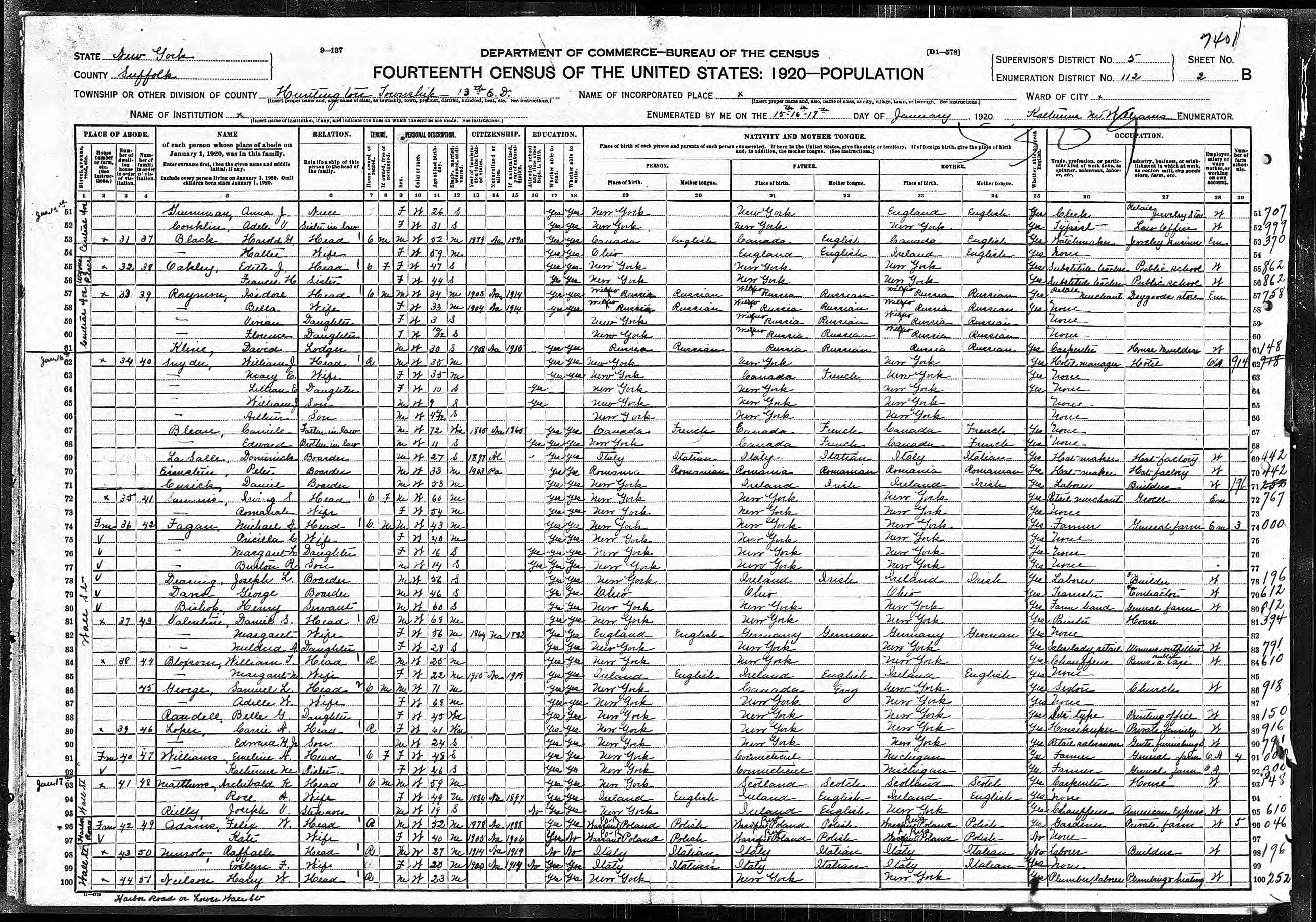 Residences1859 - New York City, New York | 1860 - New York, New York, New York 1870 - Huntington, Suffolk, New York 1880 - Huntington, Suffolk, New York 1900 - Huntington, Suffolk, New York | 1910 - Huntington, Suffolk, New York | 1913 - Huntington, Suffolk, New York 1920 - Huntington, Suffolk, New York 1930 - Huntington, Suffolk, New York |