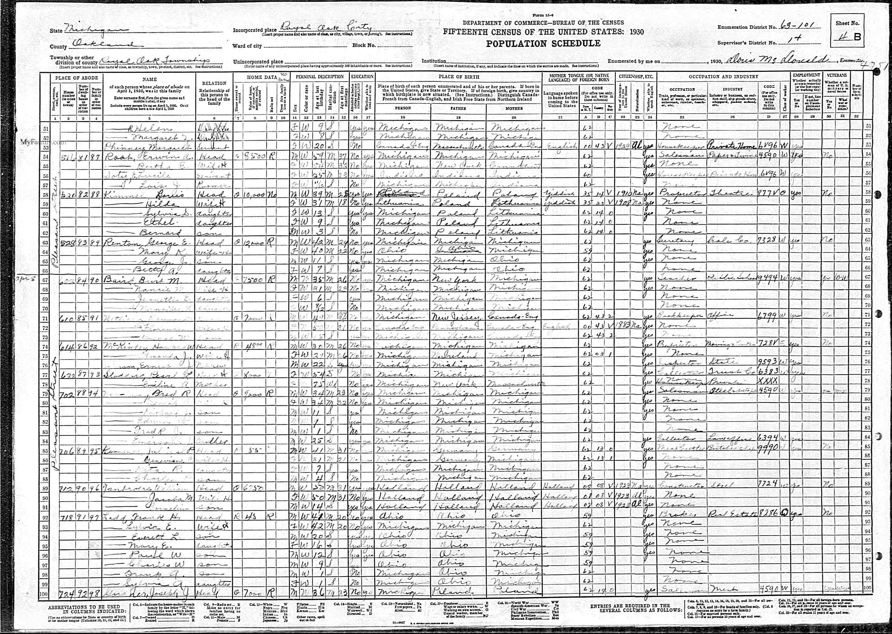 Residences1889 - Ohio | 1900 - Sandusky, Sandusky, Ohio 1910 - Sandusky, Sandusky, Ohio 1920 - Royal Oak, Oakland, Michigan 1930 - Royal Oak, Oakland, Michigan |