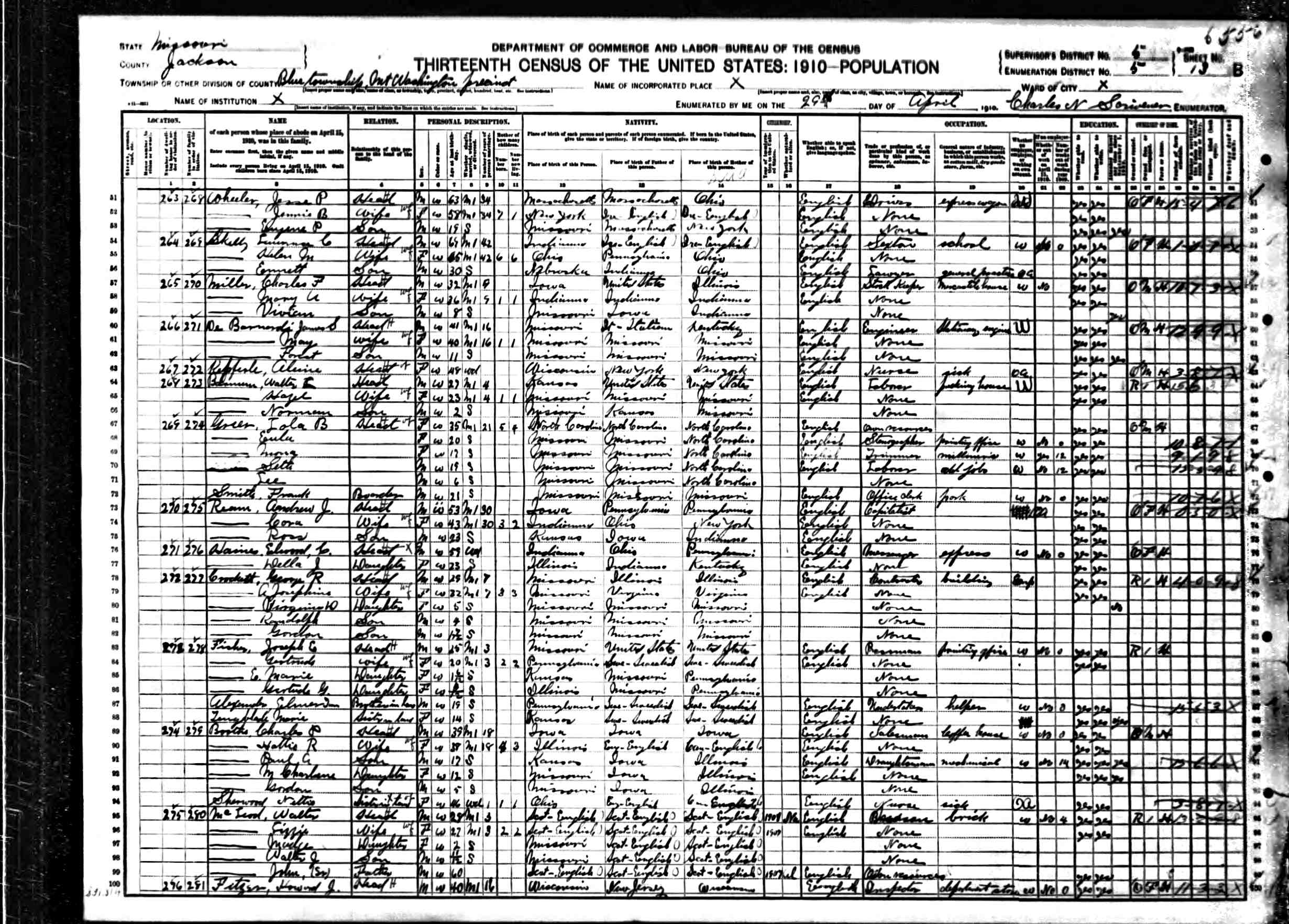 Residences1879 - Odessa, Nebraska | 1880 - Odessa, Buffalo, Nebraska 1900 - De Witt, Clinton, Iowa 1910 - Mount Washington, Jackson, Missouri 1920 - Jefferson City, Cole, Missouri 1930 - Portland, Multnomah, Oregon 1951 - Portland, Multnomah, Oregon |