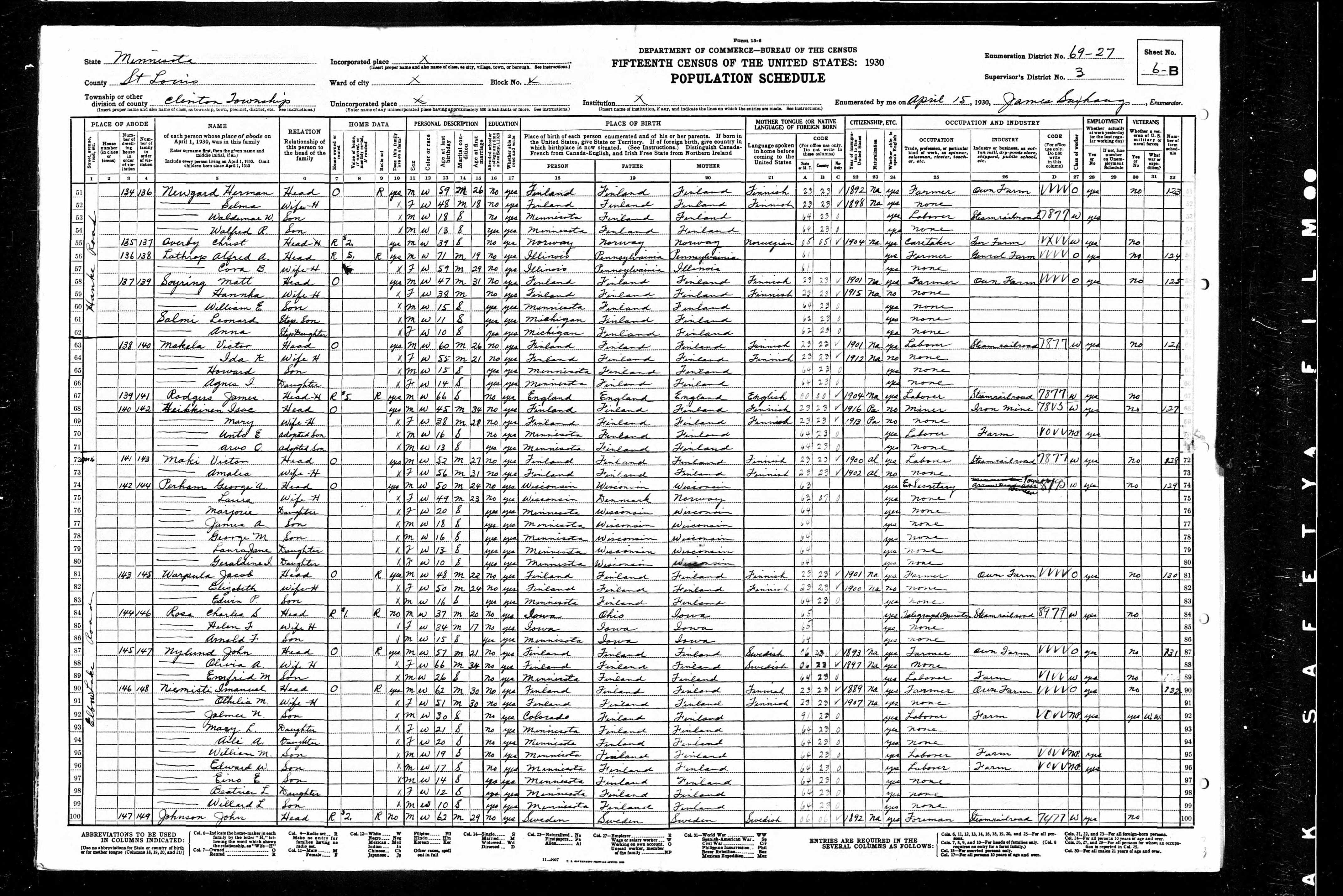 Residences1858 - Illinois | 1860 - Winslow, Stephenson, Illinois 1870 - Cadiz, Green, Wiscosin 1910 - Union, Pulaski, Missouri | 1920 - Virginia, St Louis, Minnesota | 1930 - Clinton, St Louis, Minnesota 1940 - Nichols, St Louis, Minnesota 1947 - St Paul, Ramsey, Minnesota |