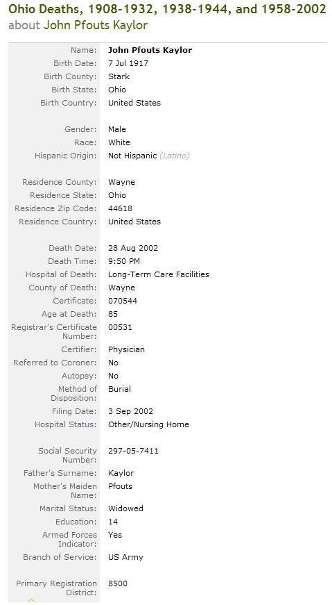 John Pfouts Kaylor - Age (85y 1m 21d)