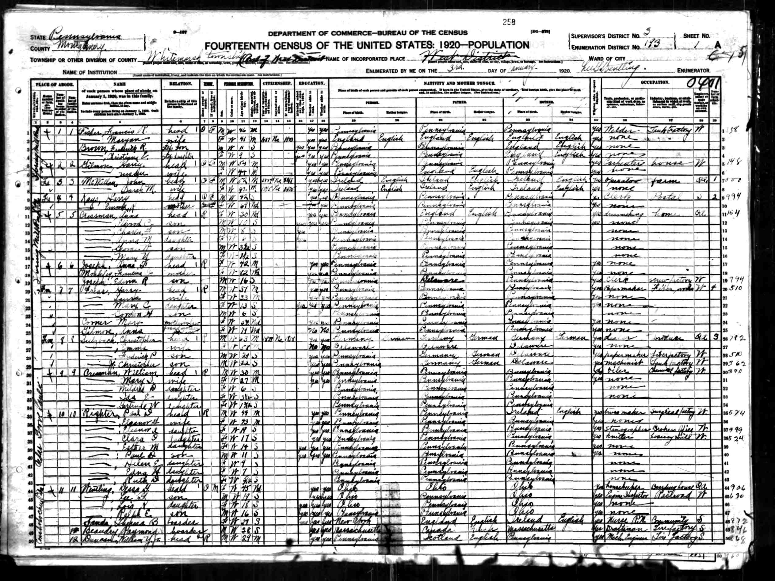 Residences1903 - Conshohocken, Pennsylvania | 1910 - Whitemarsh, Montgomery, Pennsylvania 1920 - Whitemarsh, Montgomery, Pennsylvania 1930 - Queens, Queens, New York 1963 - Austin, Travis, Texas |