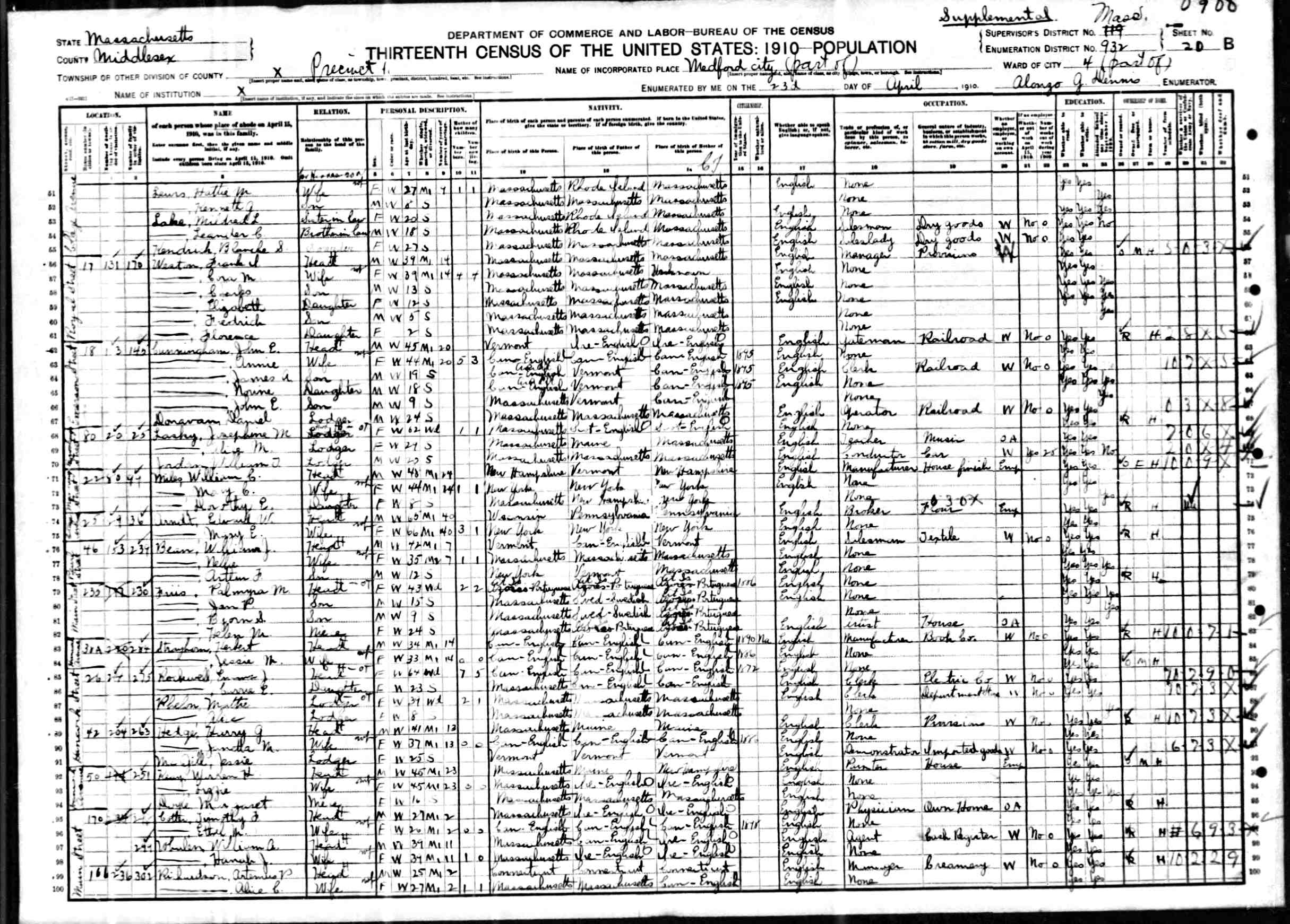 Residences1841 - Somerville, New Brunswick, Canada | 1900 - Boston, Suffolk, Massachusetts 1910 - Medford, Middlesex, Massachusetts 1910 - Medford, Middlesex, Massachusetts |