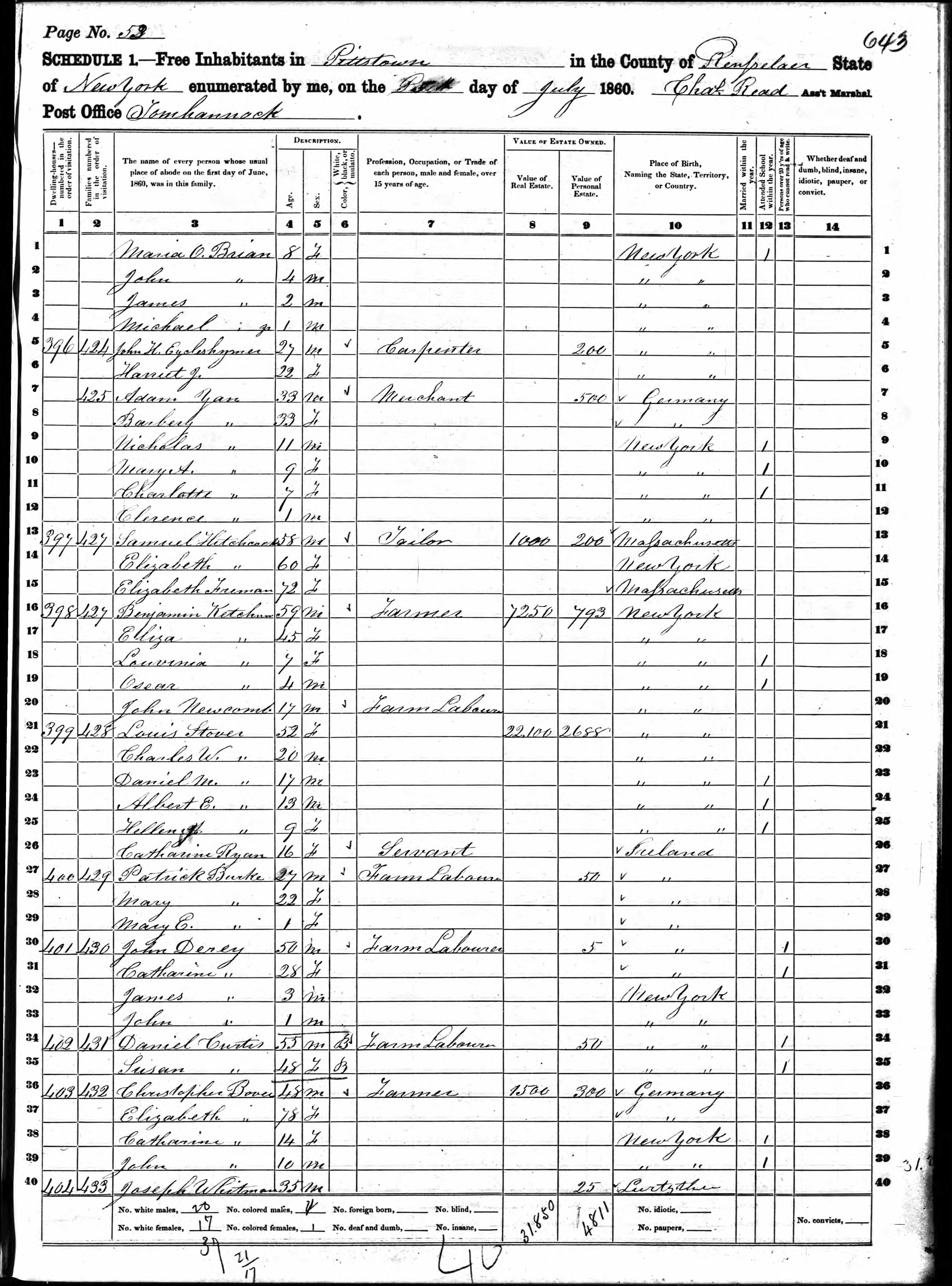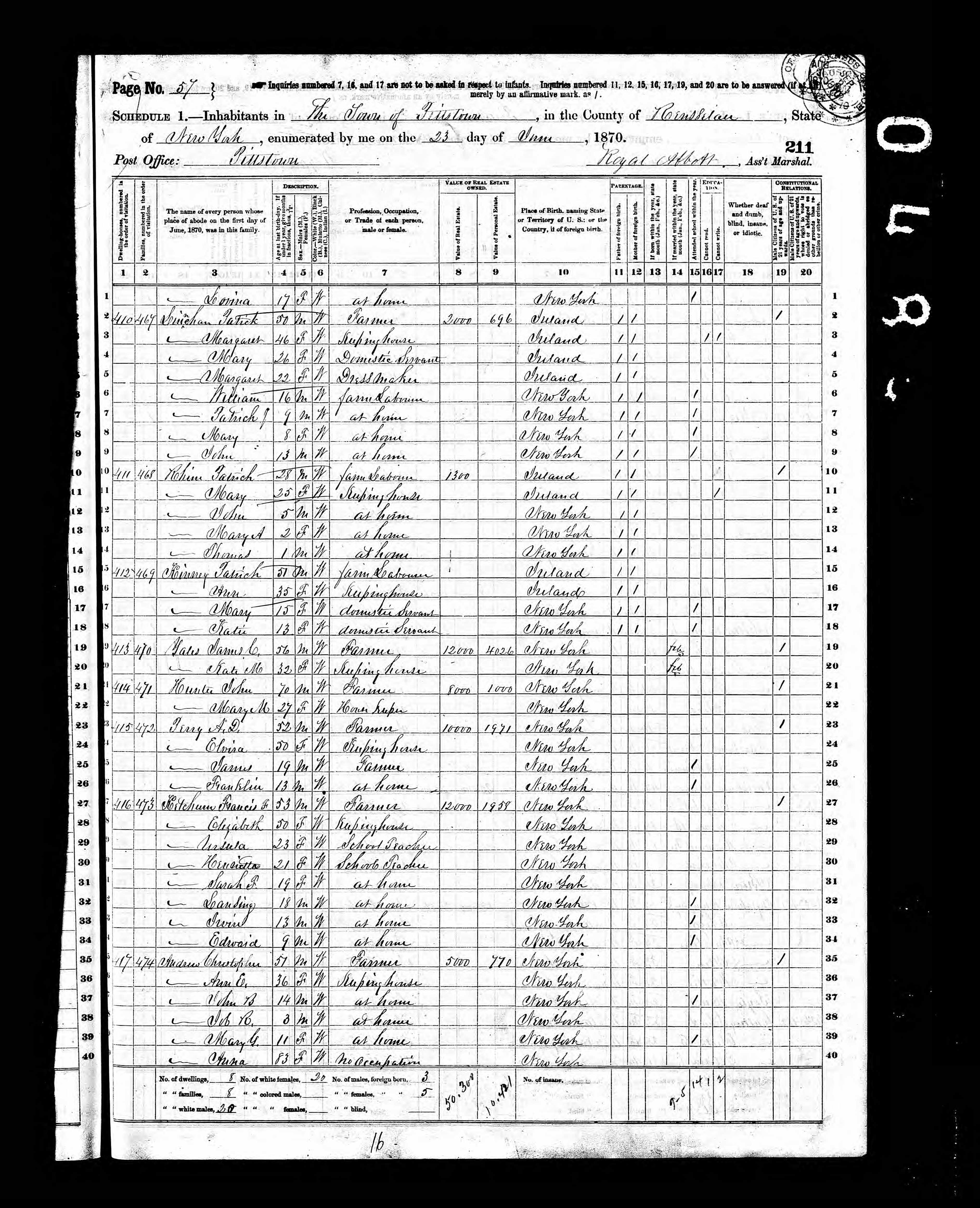 Residences1853 - Pittstown, Rensselaer, New York | 1860 - Pittstown, Rensselaer, New York 1870 - Pittstown, Rensselaer, New York 1880 - Pittstown, Rensselaer, New York 1900 - White Creek, Washington, New York 1908 - Cambridge, Washington, New York |