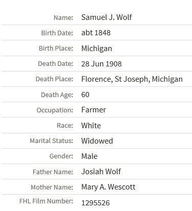 Residences1846 - Michigan | 1860 - Florence, St Joseph, Michigan 1870 - Lockport, St Joseph, Michigan 1880 - Lockport, St Joseph, Michigan 1900 - Florence, Saint Joseph, Michigan 1910 - Florence, Saint Joseph, Michigan 1915 - Battle Creek, Calhoun, Michigan |