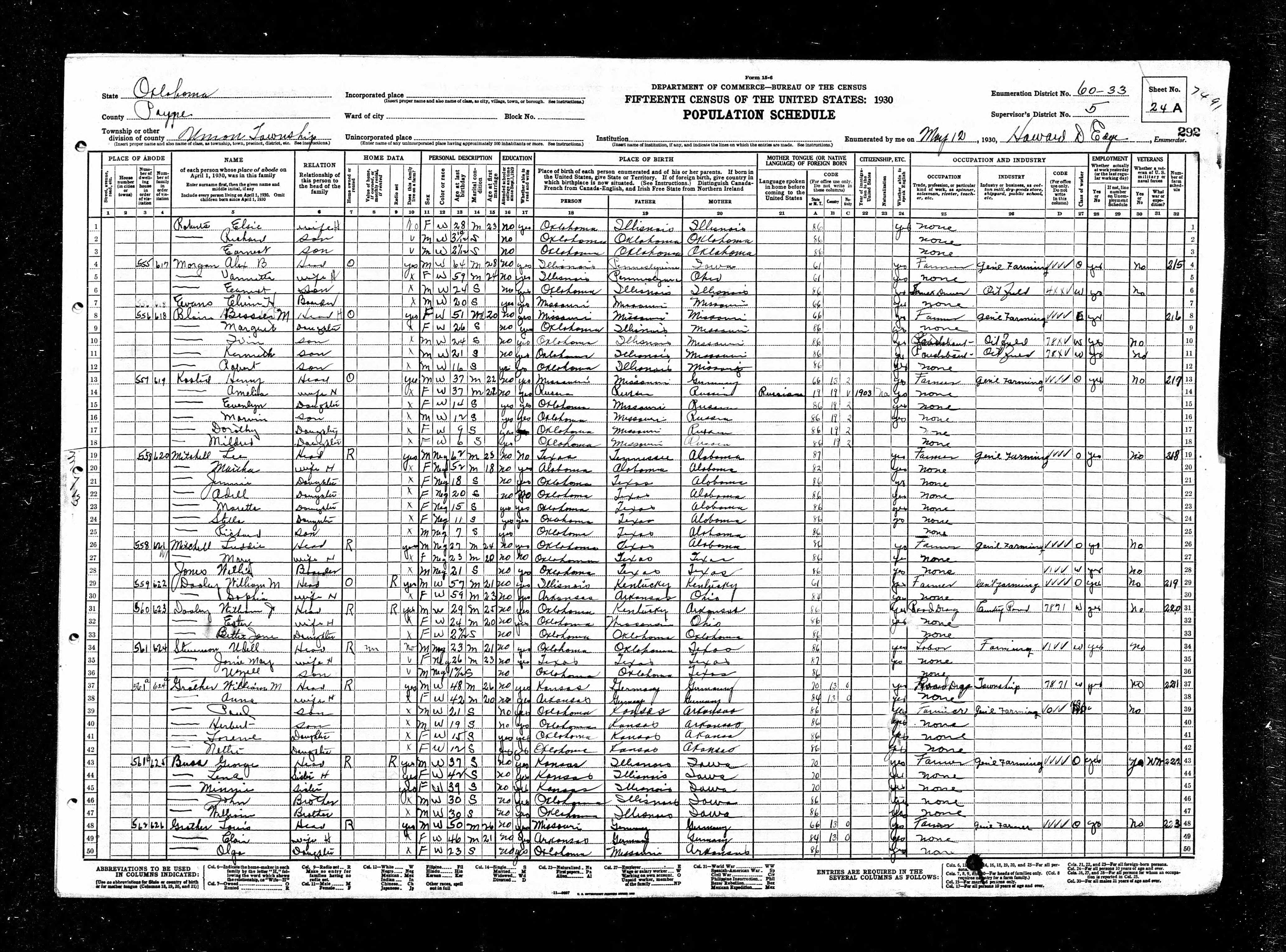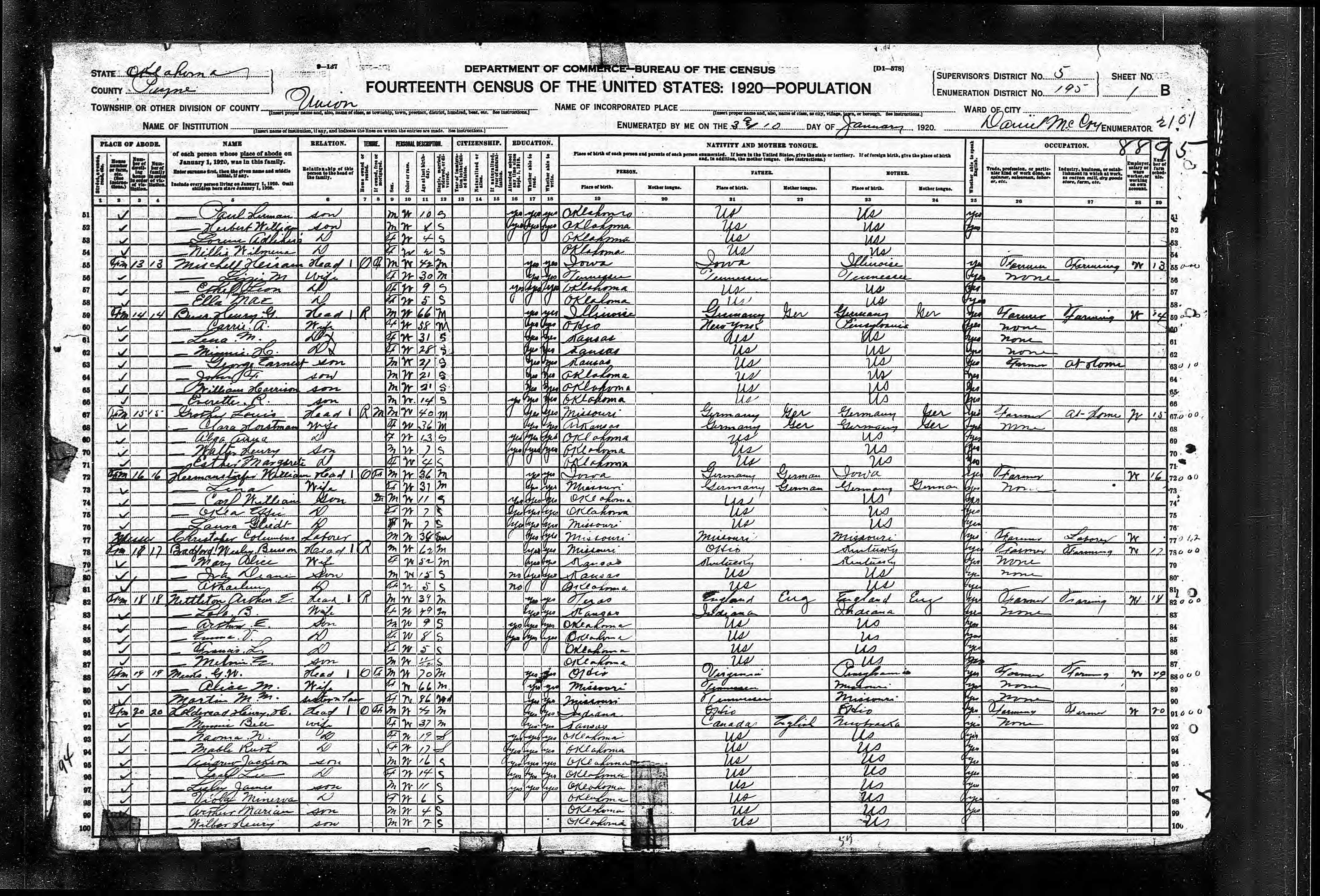 Residences1888 - Kansas | 1900 - Union, Payne, Oklahoma 1910 - Union, Payne, Oklahoma 1920 - Union, Payne, Oklahoma 1930 - Union, Payne, Oklahoma 1940 - Union, Payne, Oklahoma 1969 - Cushing, Payne, Oklahoma, USA |
