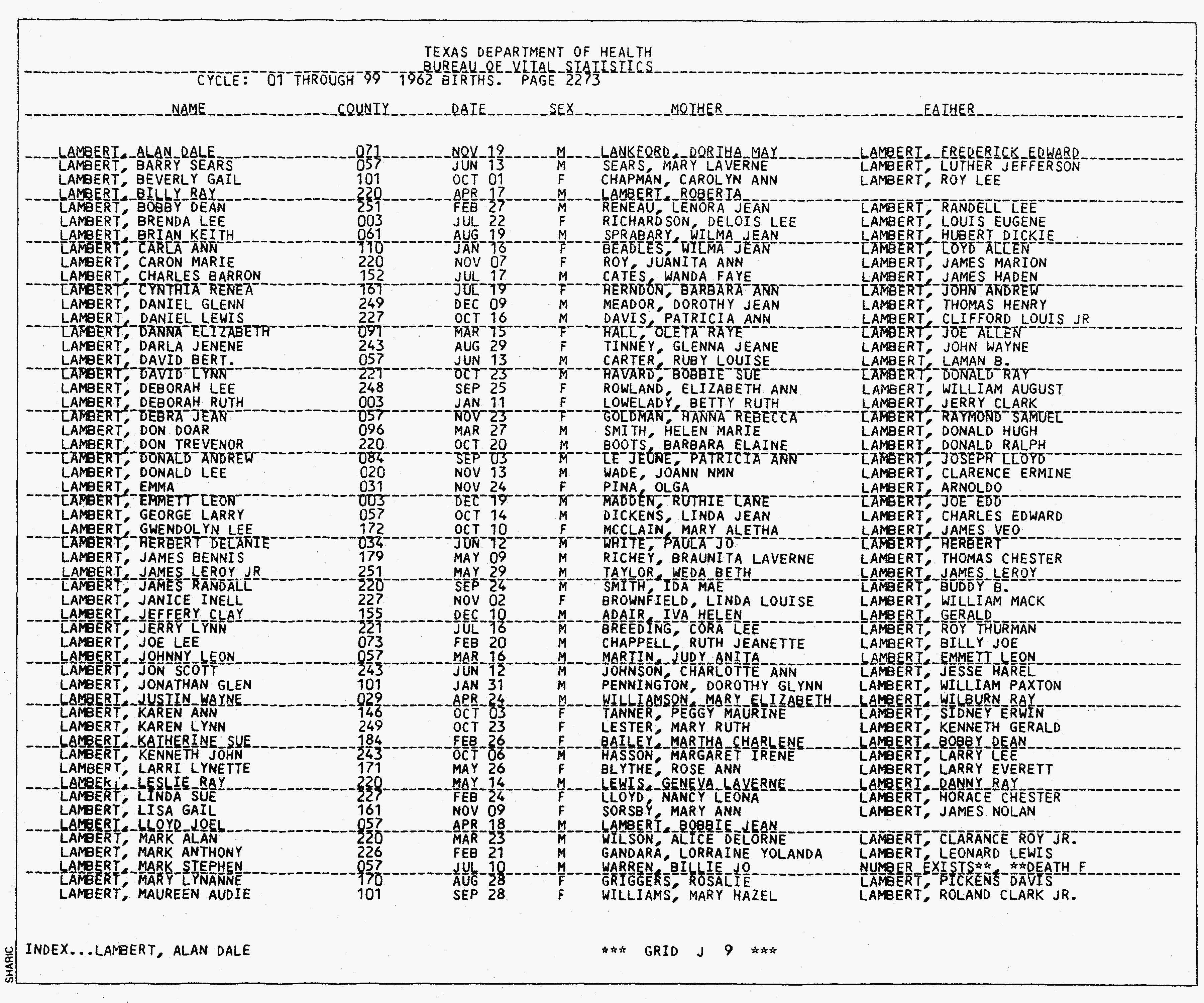 Jordan Paige Lambert - 16 Feb 1983 - Justin Caleb Lambert - 25 Jul 1986 -