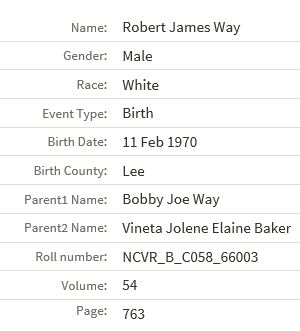 Parents   Bobby Joe Way & Vineta Jolene Elaine Baker