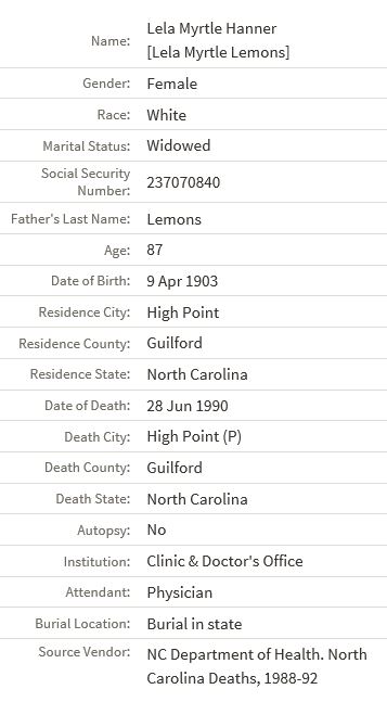Lela Myrtle Lemons - Sam M. Williams - Joseph Robert Hanner