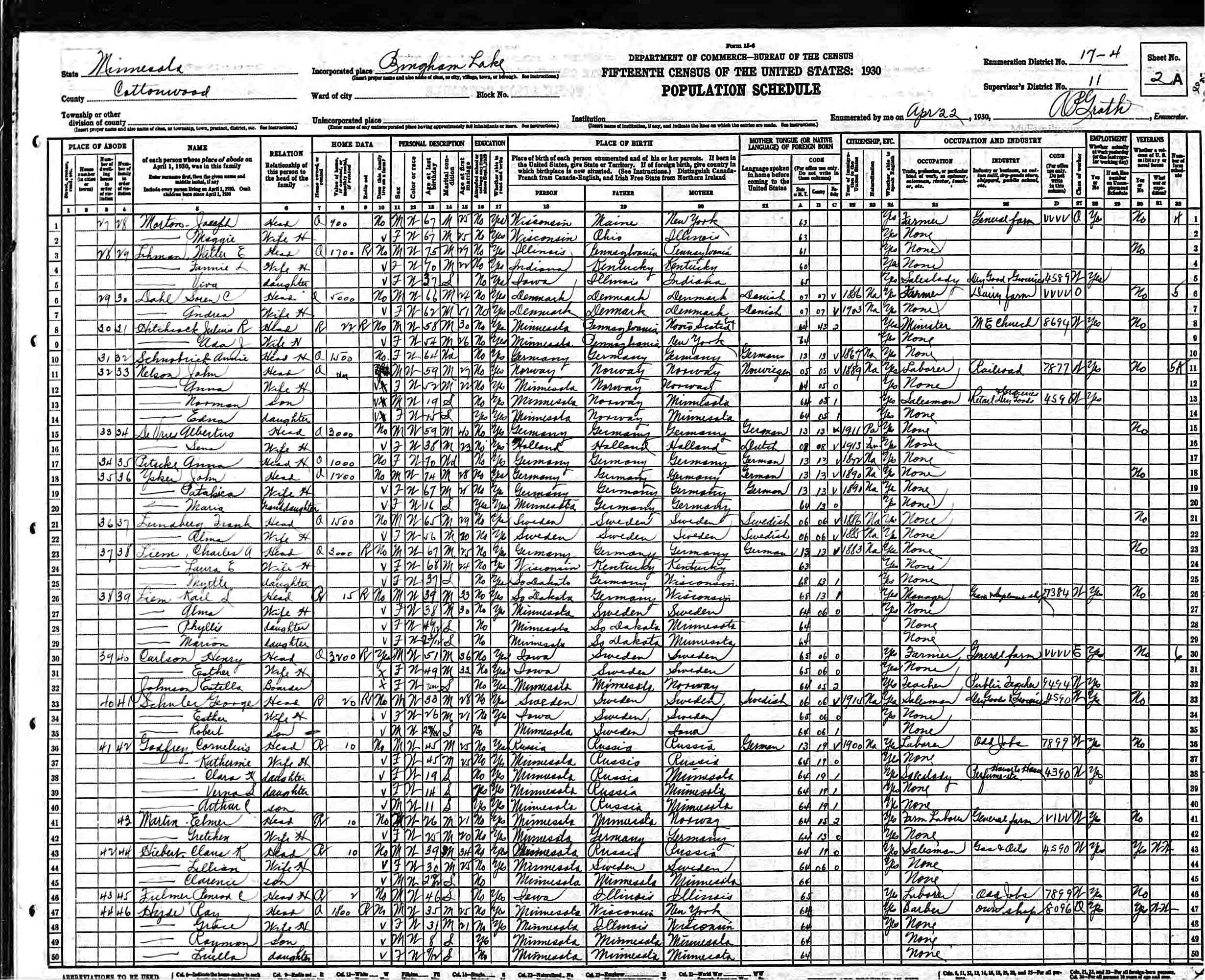 Residences1871 - Redwood Falls, Redwood, Minnesota | 1880 - Redwood Falls, Redwood, Minnesota 1910 - Madelia, Watonwan, Minnesota 1920 - Waseca, Waseca, Minnesota 1930 - Bingham Lake, Cottonwood, Minnesota 1933 - Tacoma, Pierce, Washington |
