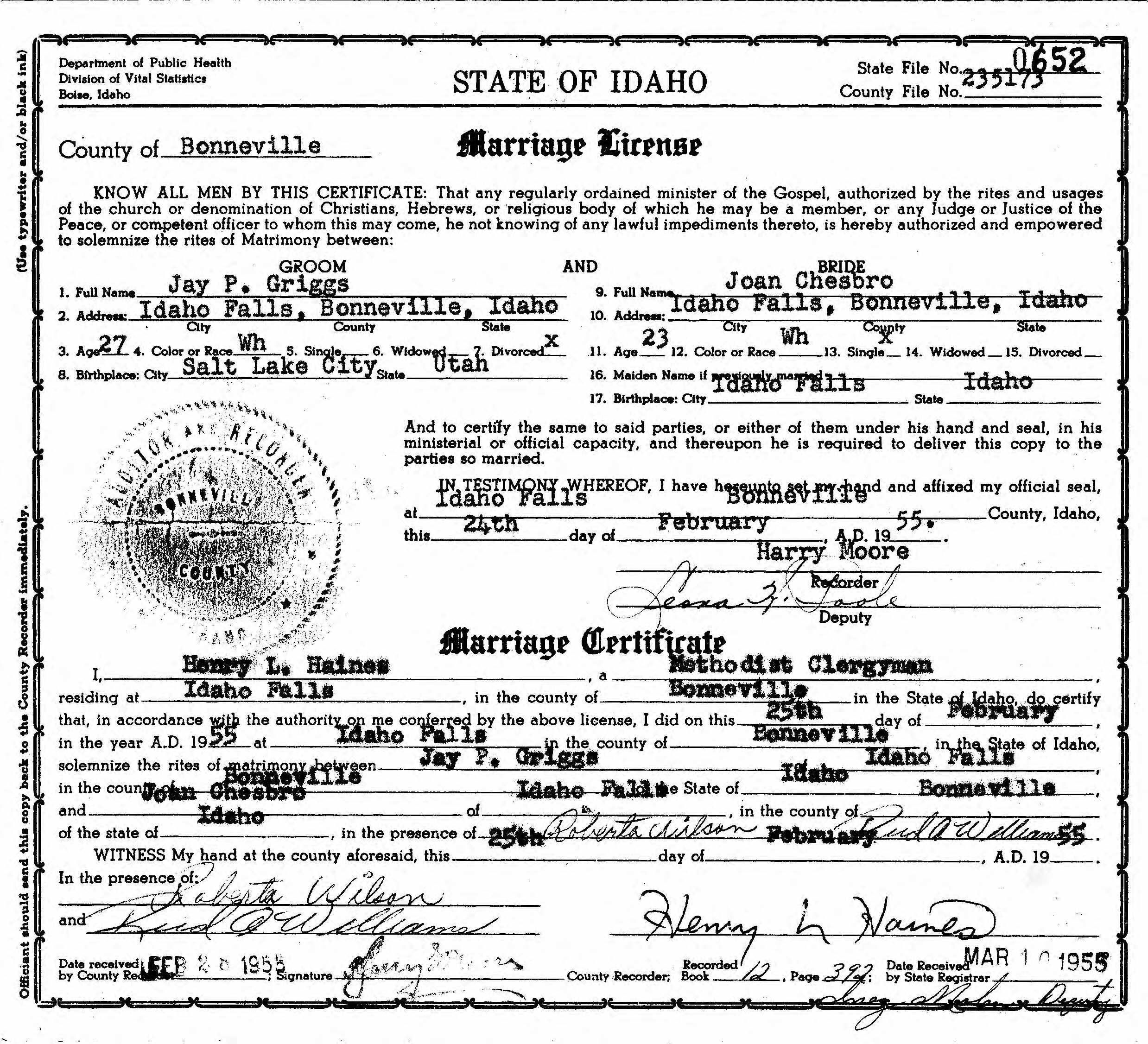 | 25 Sep 1955 - Idaho Falls, Bonneville, Idaho | |