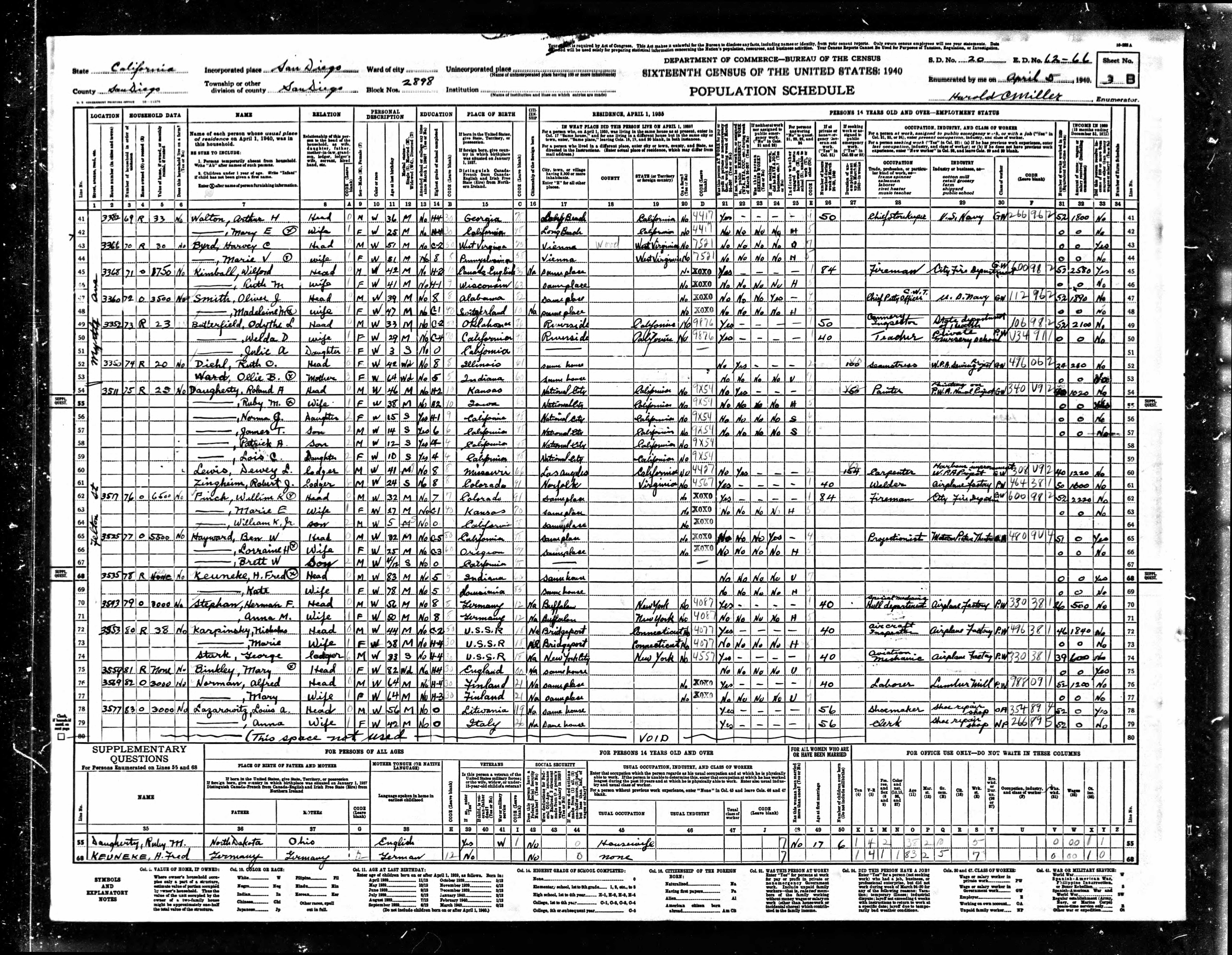 Residences1897 - Cardston, Alberta, Canada | 1910 - Midway, Canyon, Idaho 1920 - Camp Meade, Anne Arundel, Maryland 1930 - San Diego, San Diego, California 1940 - San Diego, San Diego, California 1985 - Santa Barbara, Santa Barbara, California, USA |