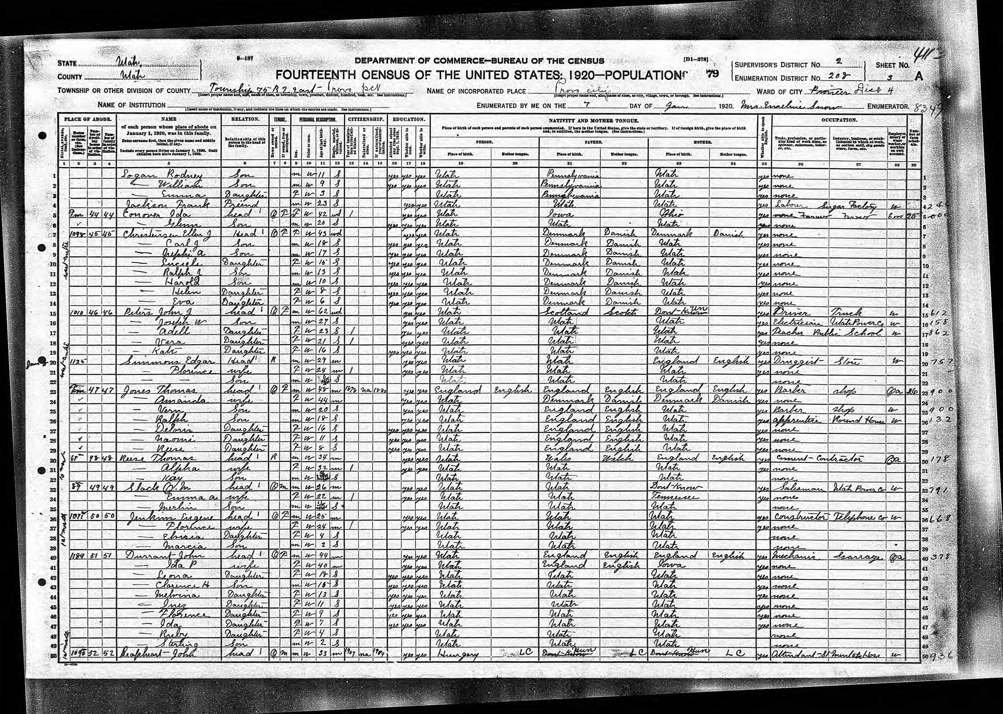 Residences1893 - Toquerville, Washington, Utah | 1900 - Toquerville, Washington, Utah 1910 - Alamo, Lincoln, Nevada 1920 - Provo, Utah, Utah 1930 - Provo, Utah, Utah 1940 - Provo, Utah, Utah 1966 - Ogden, Weber, Utah, USA |