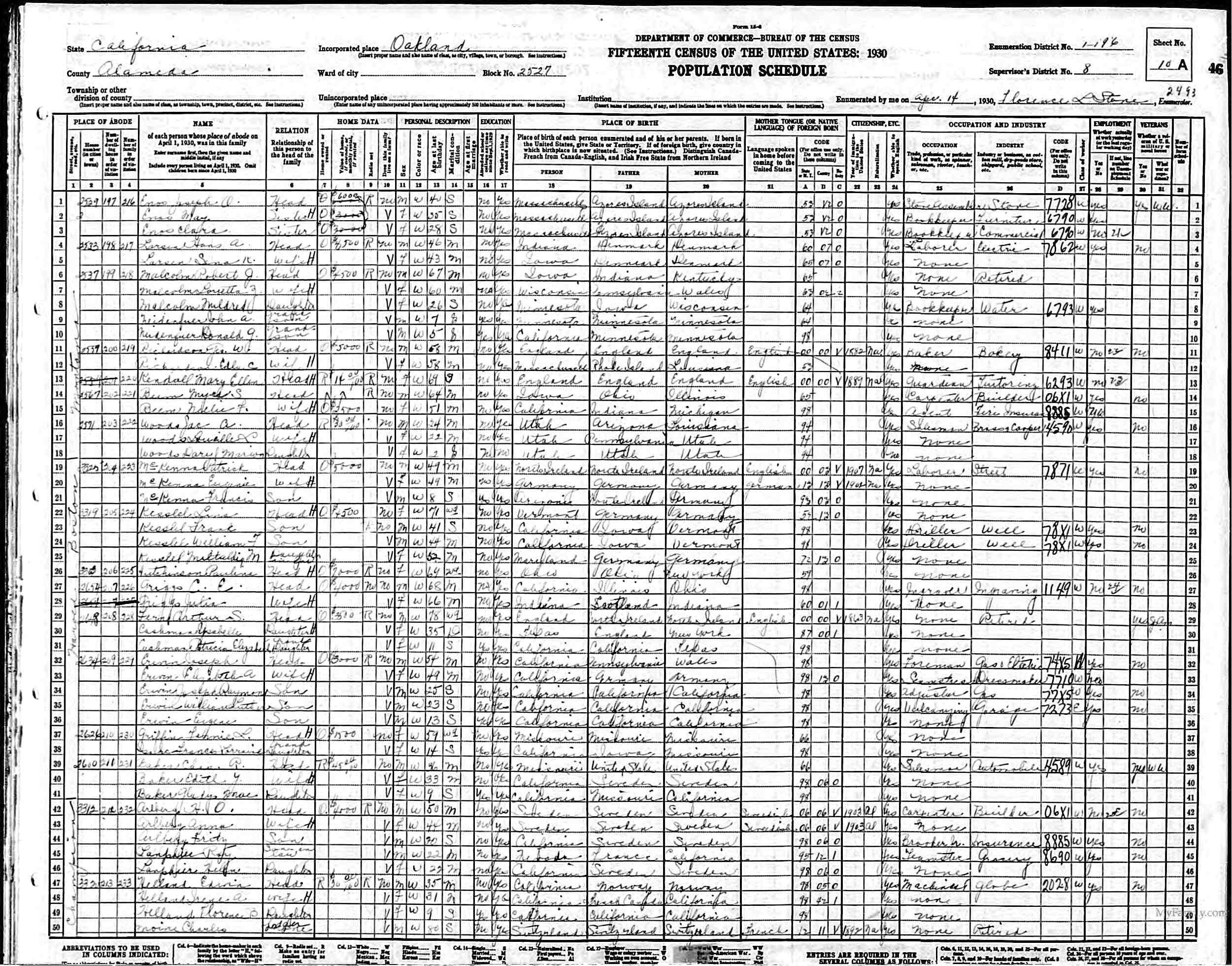 Residences1909 - Sparks, Nevada | 1920 - Oakland, Alameda, California 1930 - Oakland, Alameda, California 1977 - Pompano Beach, Broward, Florida |