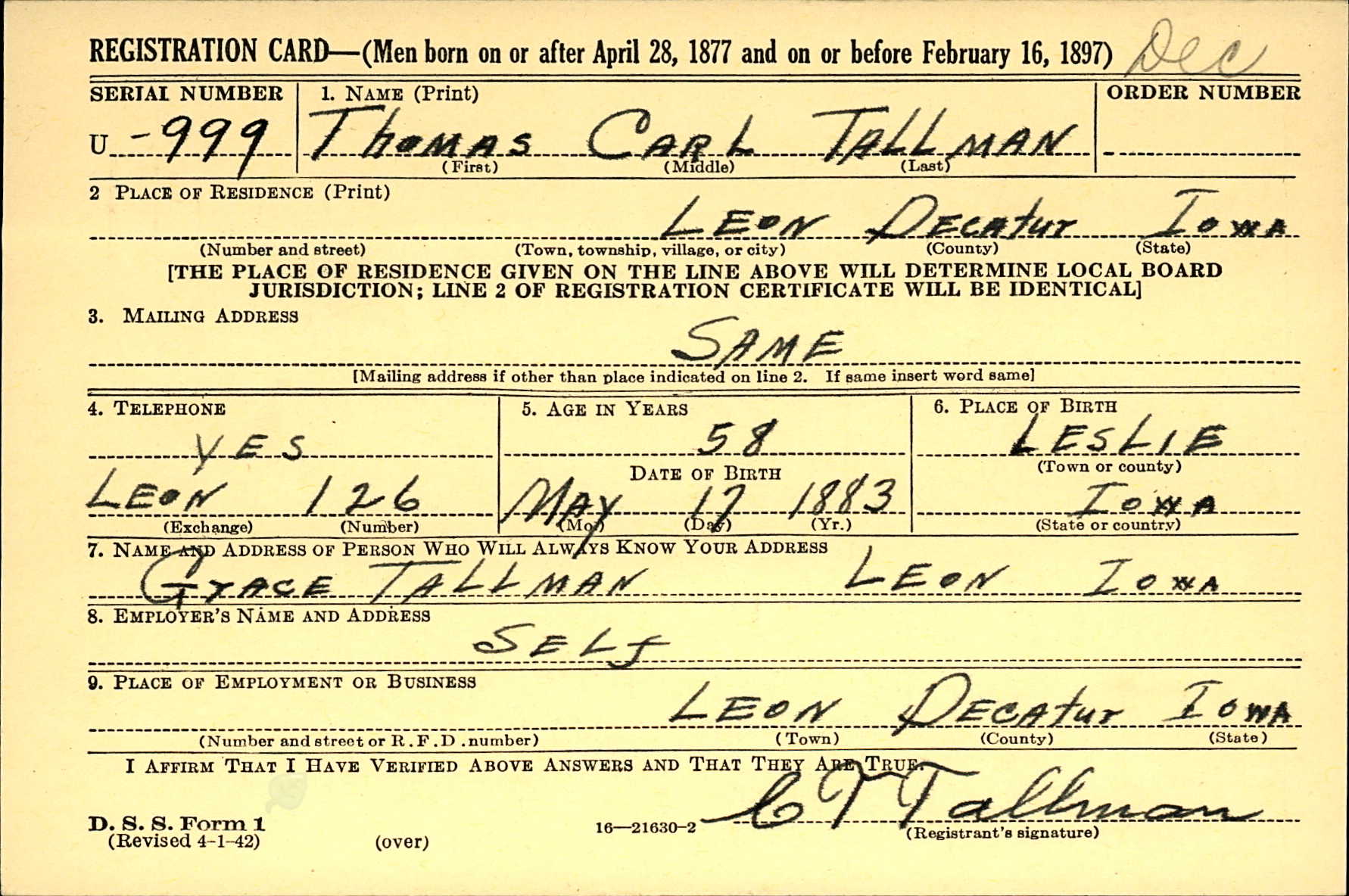 | 29 Dec 1909 - Wayne County, Iowa | |