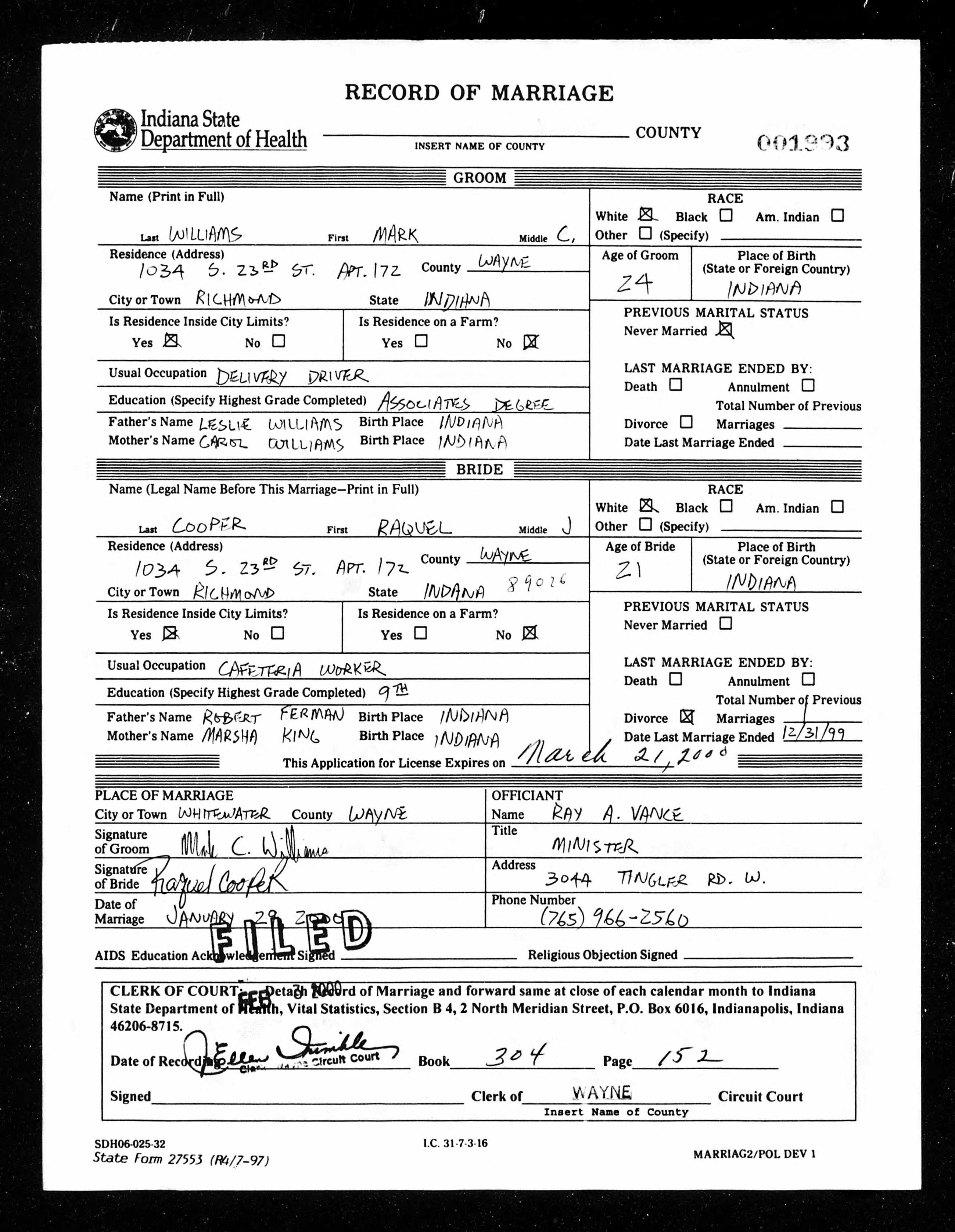 | 28 Jan 2000 - Whitewater, Ripley, Indiana | |