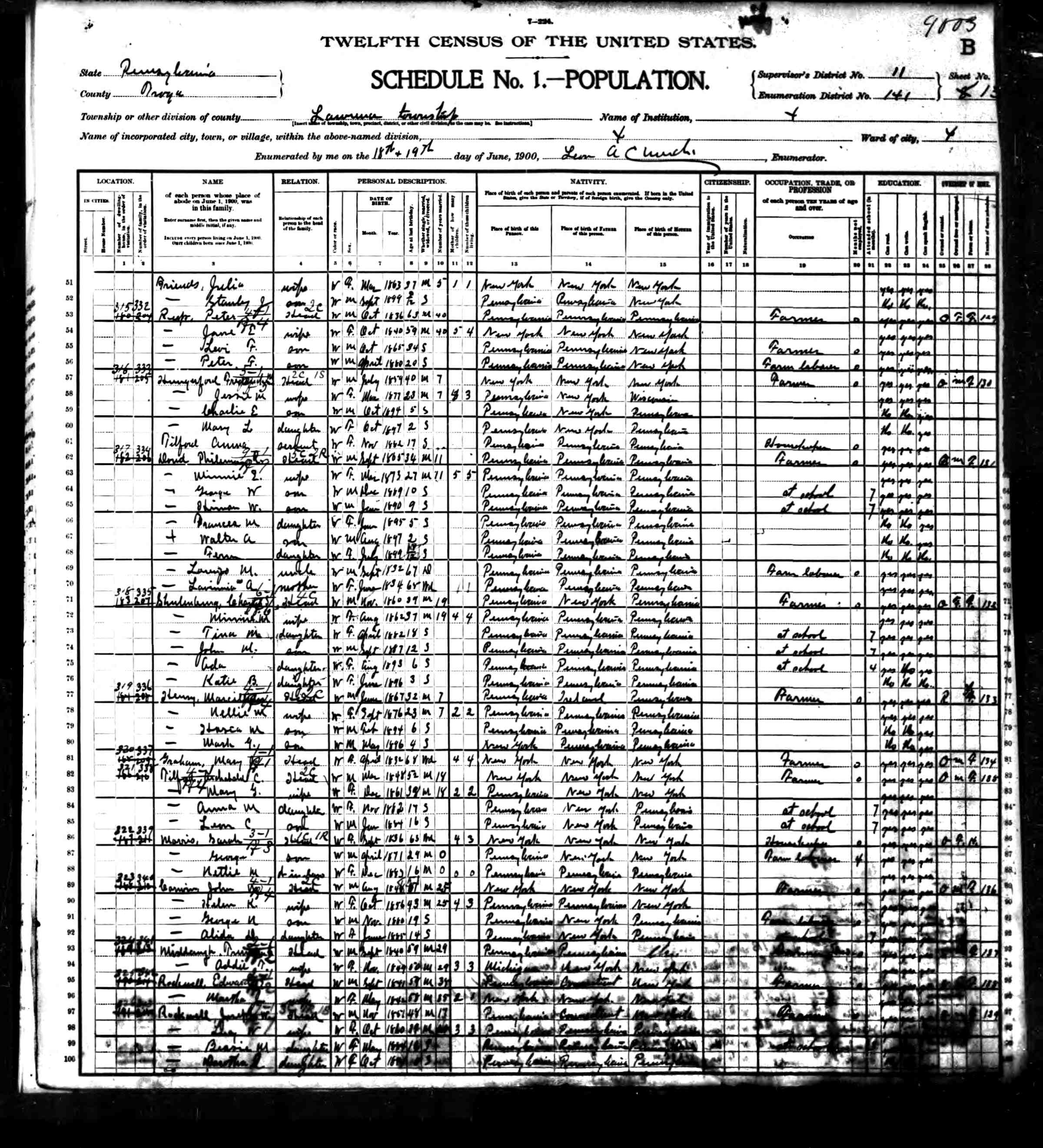 Residences1841 - Lawrenceville, Pennsylvania | 1850 - Lawrence, Tioga, Pennsylvania 1860 - Lawrence, Tioga, Pennsylvania 1870 - Shippen, Cameron, Pennsylvania 1880 - Lawrence, Tioga, Pennsylvania 1900 - Lawrence, Tioga, Pennsylvania |