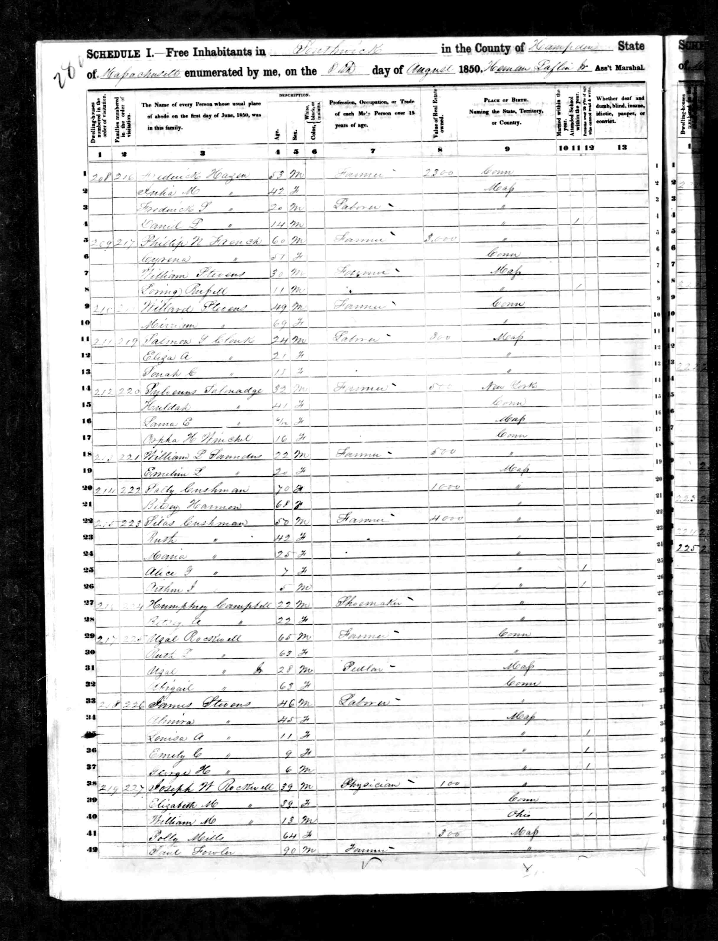 1850 - Southwick, Hampden, Massachusetts