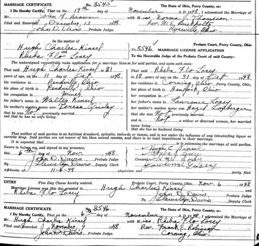 Hugh Charles Kinsel - Rheba Flo Losey - Erma Jean Dudash