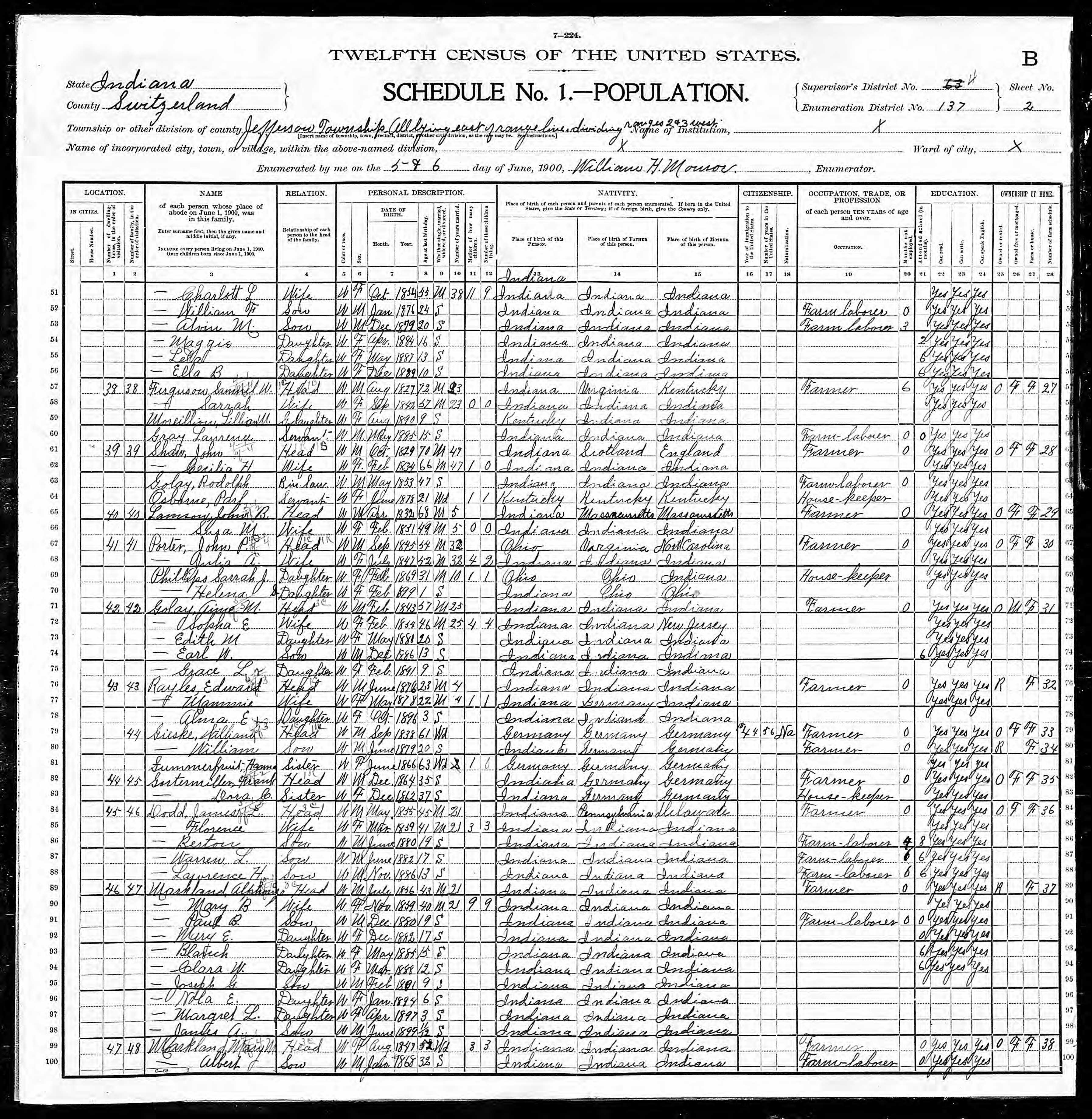 Residences1890 - Kentucky | 1900 - Jefferson, Switzerland, Indiana 1920 - Jefferson, Switzerland, Indiana 1930 - Greenville, Darke, Ohio 1940 - Dayton, Montgomery, Ohio 1972 - Dayton, Montgomery, Ohio |