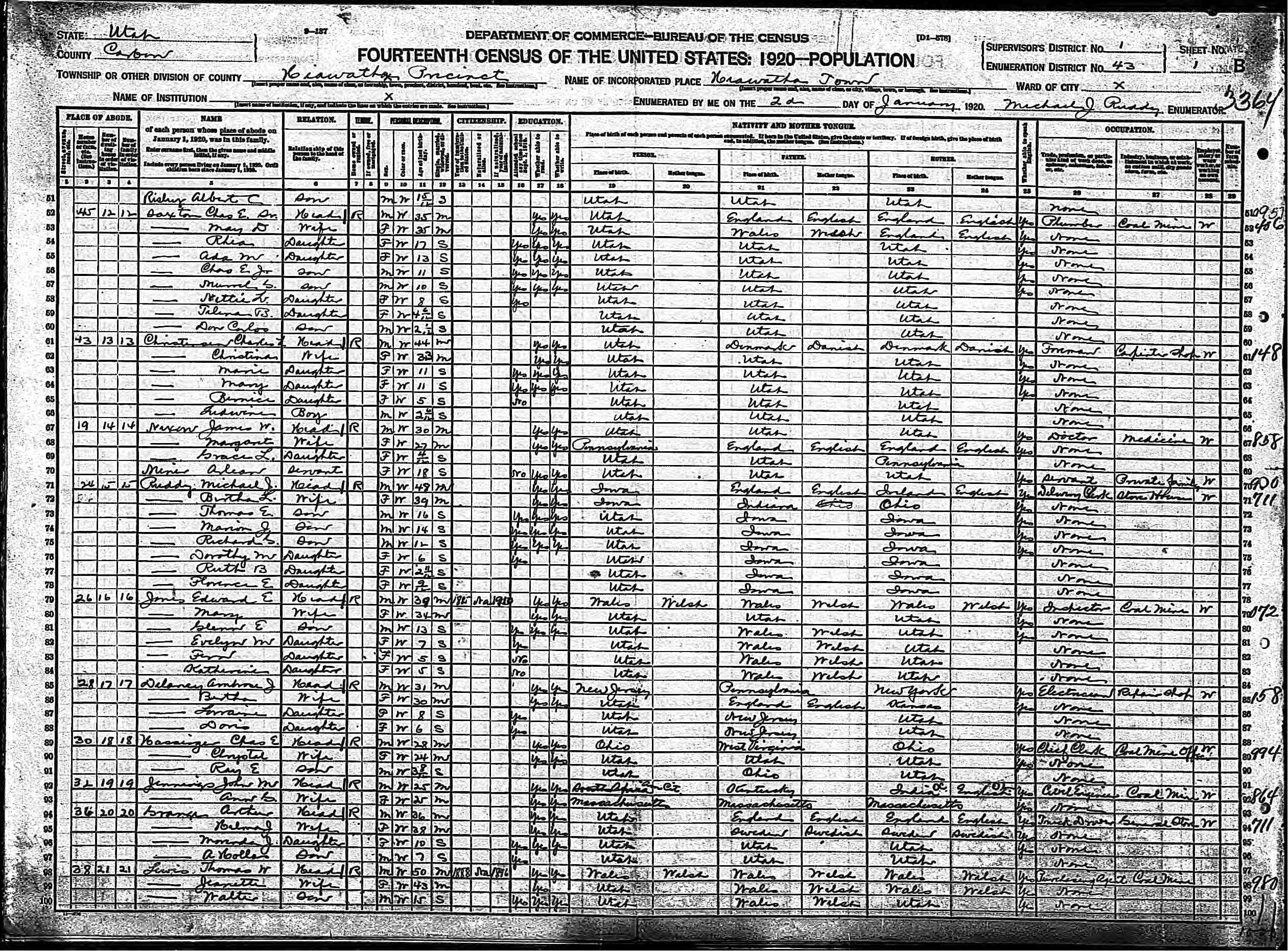 Residences1901 - Springville, Utah | 1910 - Springville, Utah, Utah 1920 - Hiawatha, Carbon, Utah 1927 - Price, Utah |