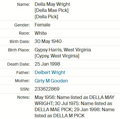 Residences1940 - Gypsy, West Virginia | 1950 - Buckhannon, Upshur, West Virginia 1998 - Youngstown, Mahoning, Ohio |