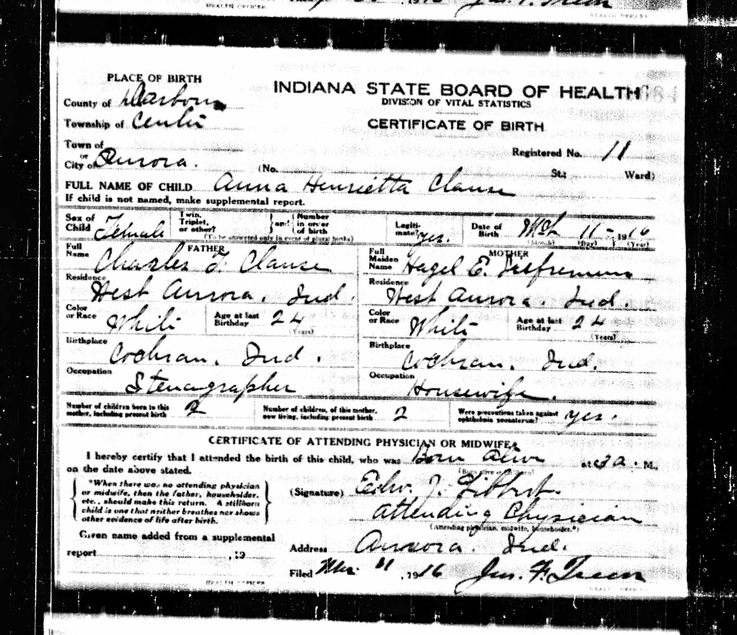 Residences1916 - Aurora, Dearborn, Indiana | 1920 - Aurora, Dearborn, Indiana 1930 - Aurora, Dearborn, Indiana 1940 - Carrollton, Carroll, Ohio 1950 - Carrollton, Carroll, Ohio 2003 - , Jensen Beach, Martin, Florida, USA |