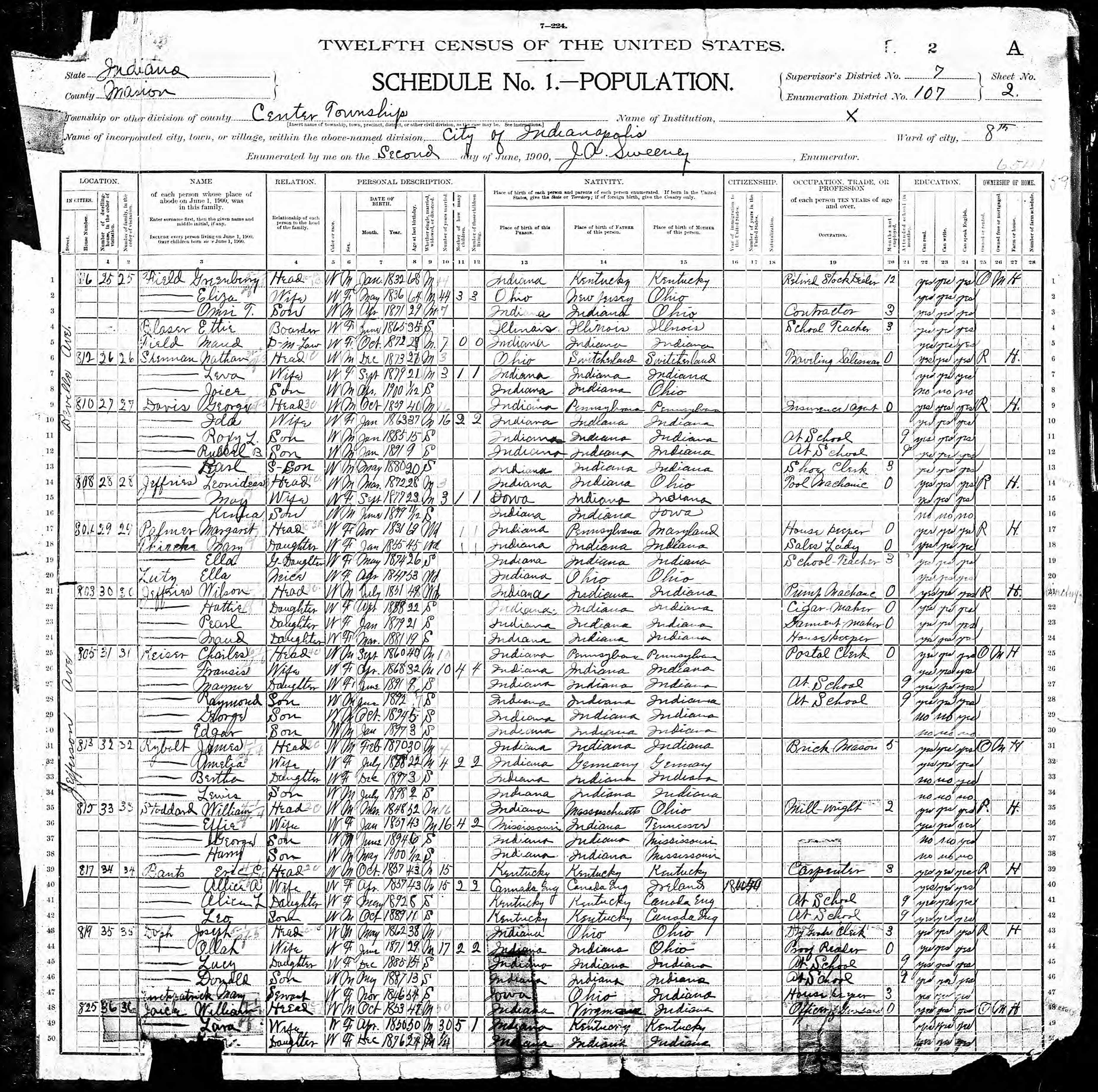 Residences1886 - Indianapolis, Marion, Indiana | 1900 - Center, Marion, Indiana 1920 - Washington, Marion, Indiana 1921 - Washington, Marion, Indiana |