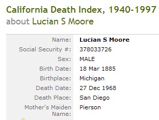 Residences1885 - Michigan | 1900 - Detroit, Wayne, Michigan 1910 - Detroit, Wayne, Michigan 1920 - Detroit, Wayne, Michigan 1968 - Escondido, San Diego, California |