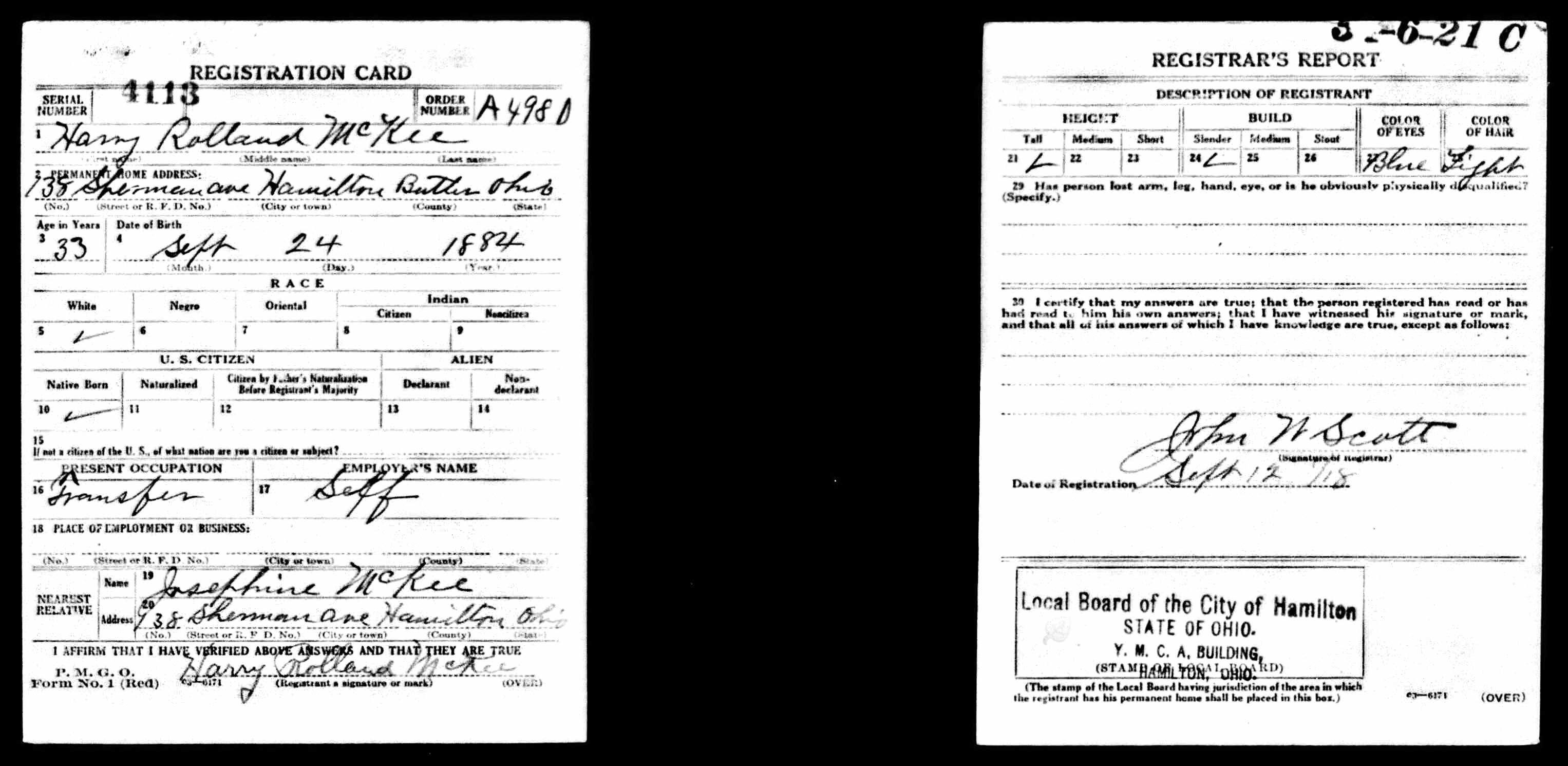 Residences1884 - Whitewater, Franklin, Indiana | 1900 - Connersville, Fayette, Indiana 1910 - Hamilton, Butler, Ohio 1920 - Hamilton, Butler, Ohio | 1930 - Hamilton, Butler, Ohio | 1940 - Hamilton, Butler, Ohio 1950 - Hamilton, Butler, Ohio 1970 - , Hamilton, Butler, Ohio, USA |