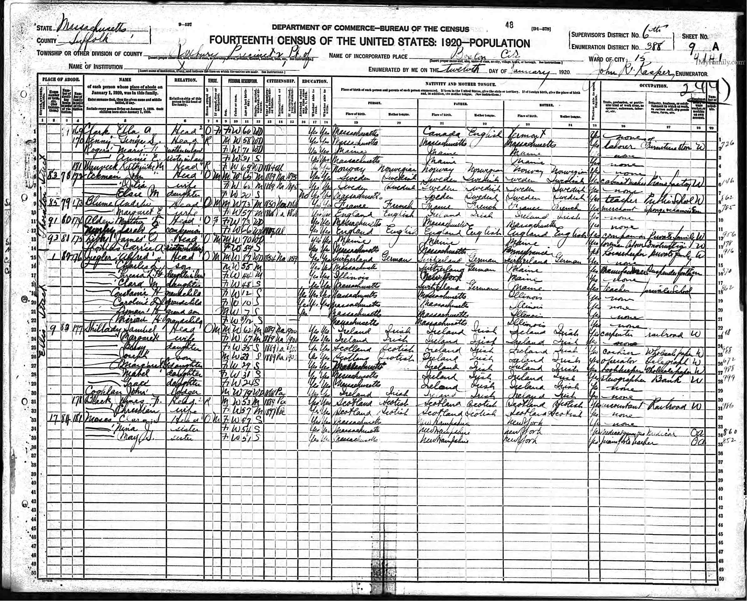 Residences1875 - Galesburg, Illinois | 1880 - Gorham, Cumberland, Maine 1910 - Boston, Suffolk, Massachusetts 1920 - Boston, Suffolk, Massachusetts 1930 - Newton, Middlesex, Massachusetts |