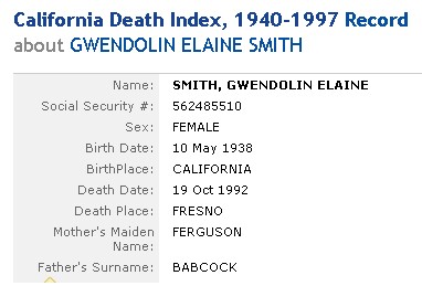 Gwendolyn Elaine Babcock - O'Dell - Jensen - Smith