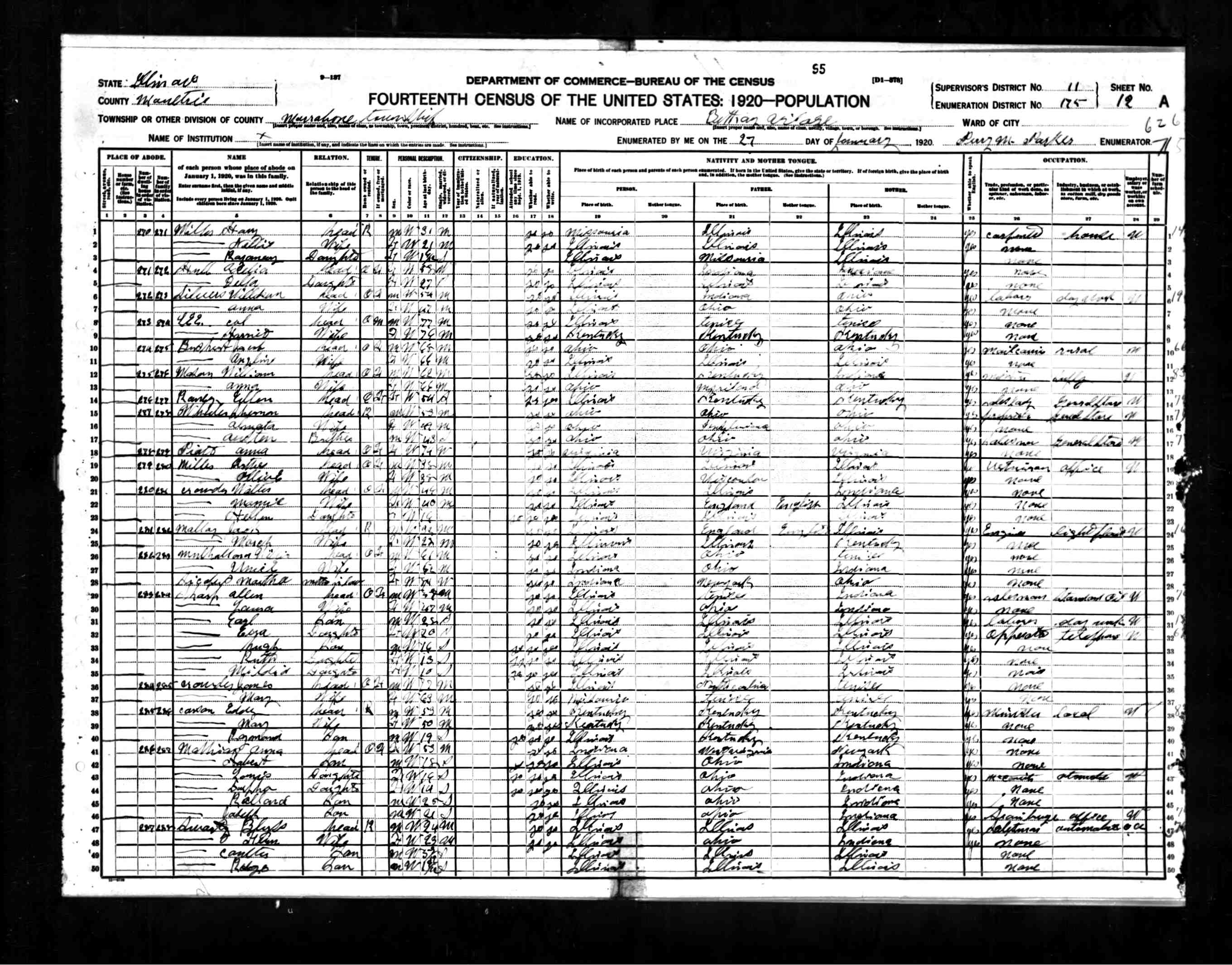 Residences1882 - Moultrie, Illinois | 1900 - Sullivan, Illinois 1910 - Marrowbone, Illinois 1920 - Marrowbone, Illinois 1930 - Bethany, Illinois 1976 - Bethany, Moultrie, Illinois |