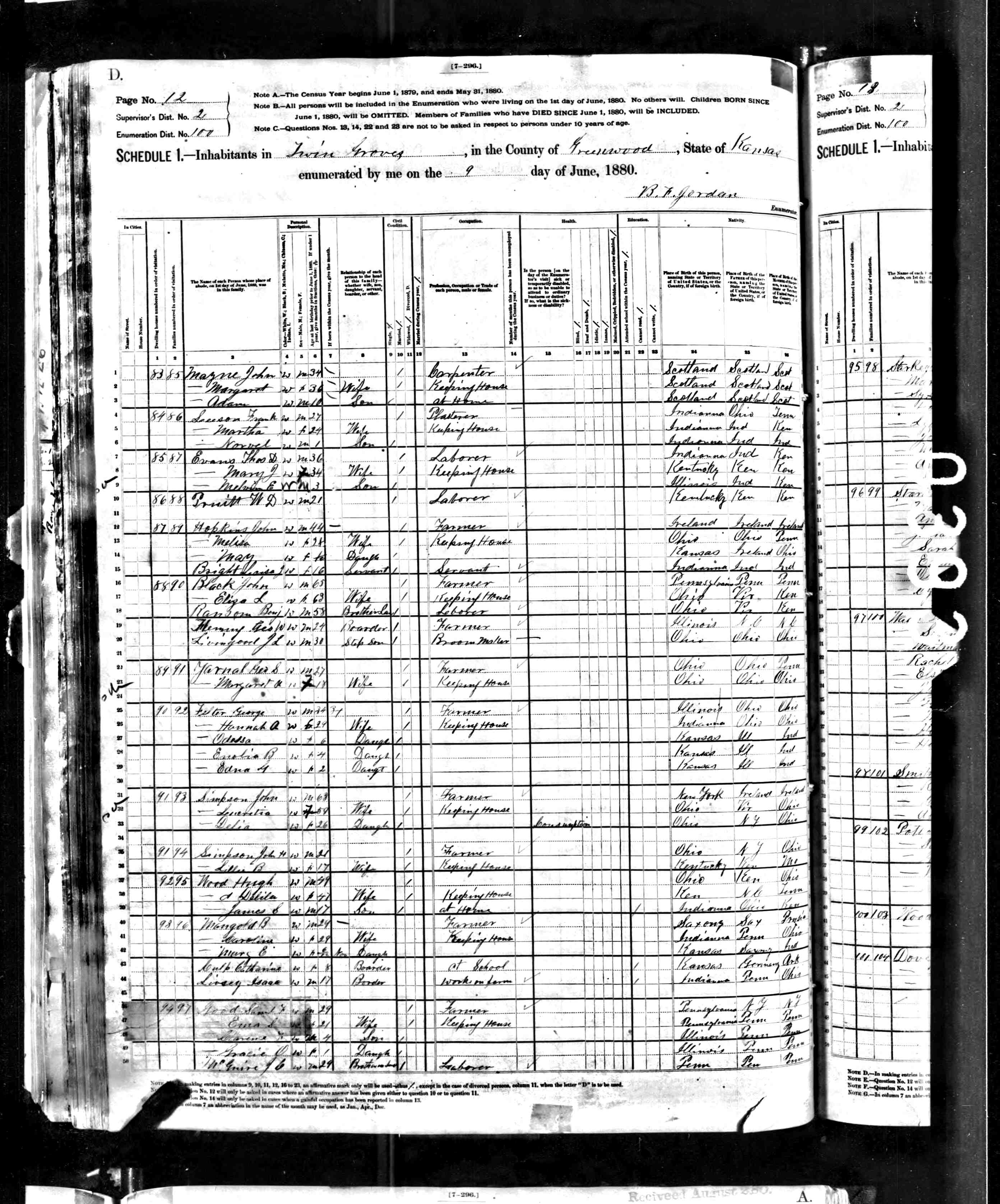 Residences1856 - Monroe, Ohio | 1860 - Lincoln, Morrow, Ohio 1870 - Fairview, Jones, Iowa 1880 - Twin Groves, Greenwood, Kansas 1900 - Rome, Jones, Iowa 1943 - Plattsmouth, Cass, Nebraska |
