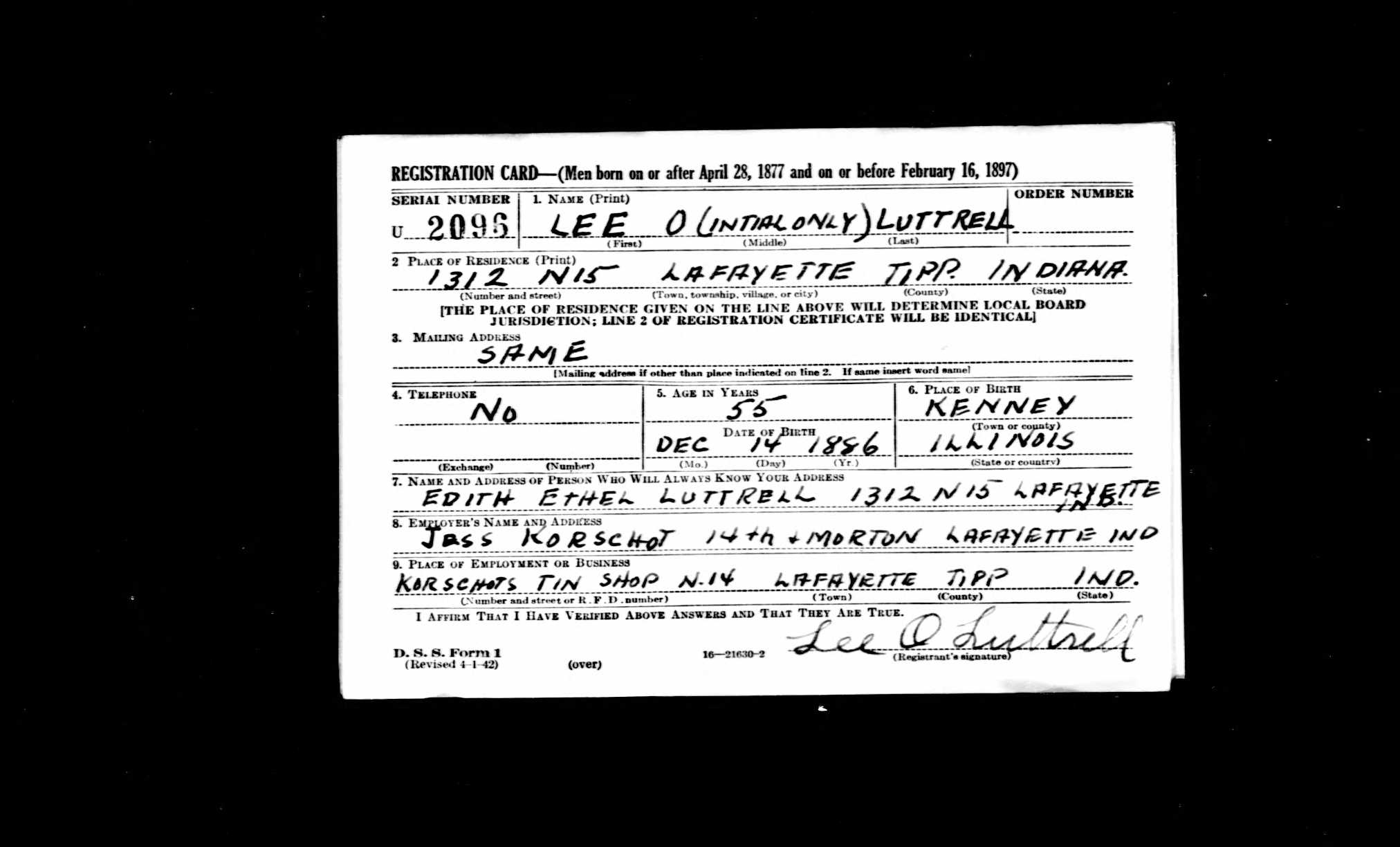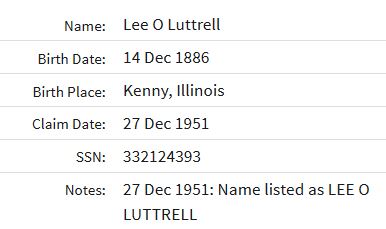 Residences1889 - Lovington, Moultrie, Illinois | 1900 - Johnathan Creek, Moultrie, Illinois 1910 - Stanley, South Dakota 1920 - Paris, Edgar, Illinois 1930 - Paris, Edgar, Illinois 1940 - Decatur, Macon, Illinois 1979 - Decatur, Macon, Illinois |