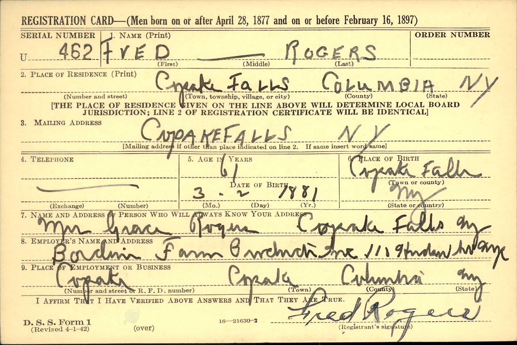 Residences1881 - Copake, Columbia, New York | 1900 - Copake, Columbia, New York 1910 - Copake, Columbia, New York 1920 - Copake, Columbia, New York 1930 - Copake, Columbia, New York |