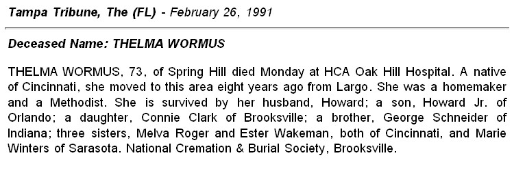 Howard E. Wormus - Thelma Schneider