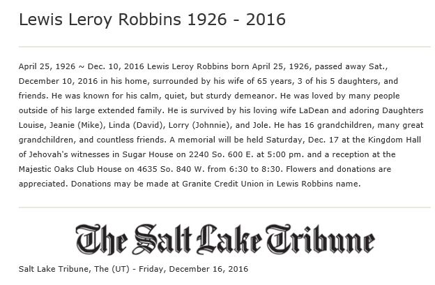 Obituary   Salt Lake Tribune - 16 Dec 2016