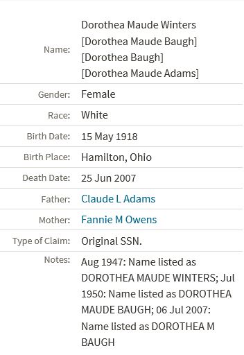 Dorothea Maude Adams - Charles Oliver Winters - David Hartford Baugh