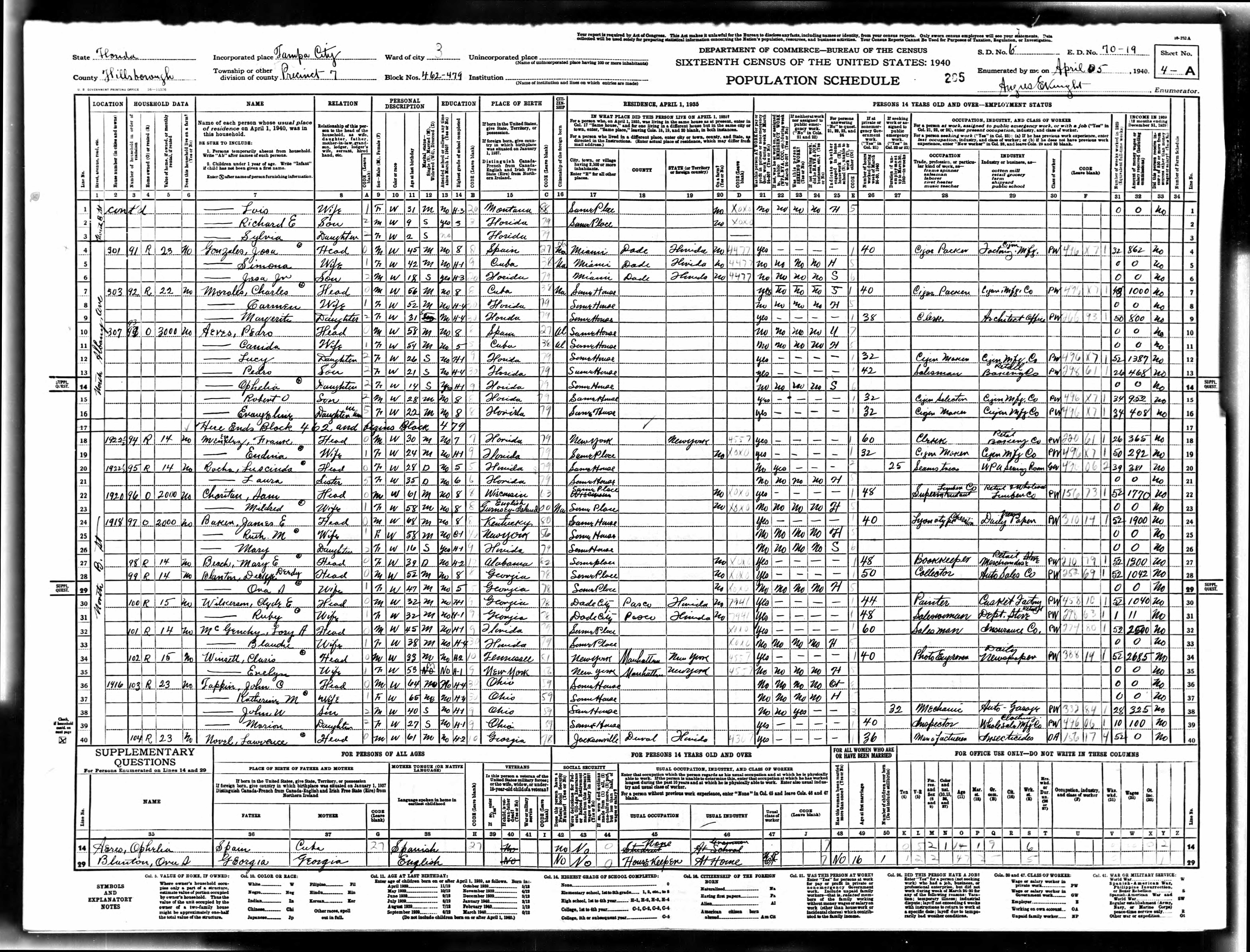 Residences1901 - Tampa, Hillsborough, Florida | 1910 - Tampa, Hillsborough, Florida 1920 - Tampa, Hillsborough, Florida 1930 - Tampa, Hillsborough, Florida 1940 - Tampa, Hillsborough, Florida 1950 - Tampa, Hillsborough, Florida 1996 - Tampa, Hillsborough, Florida |