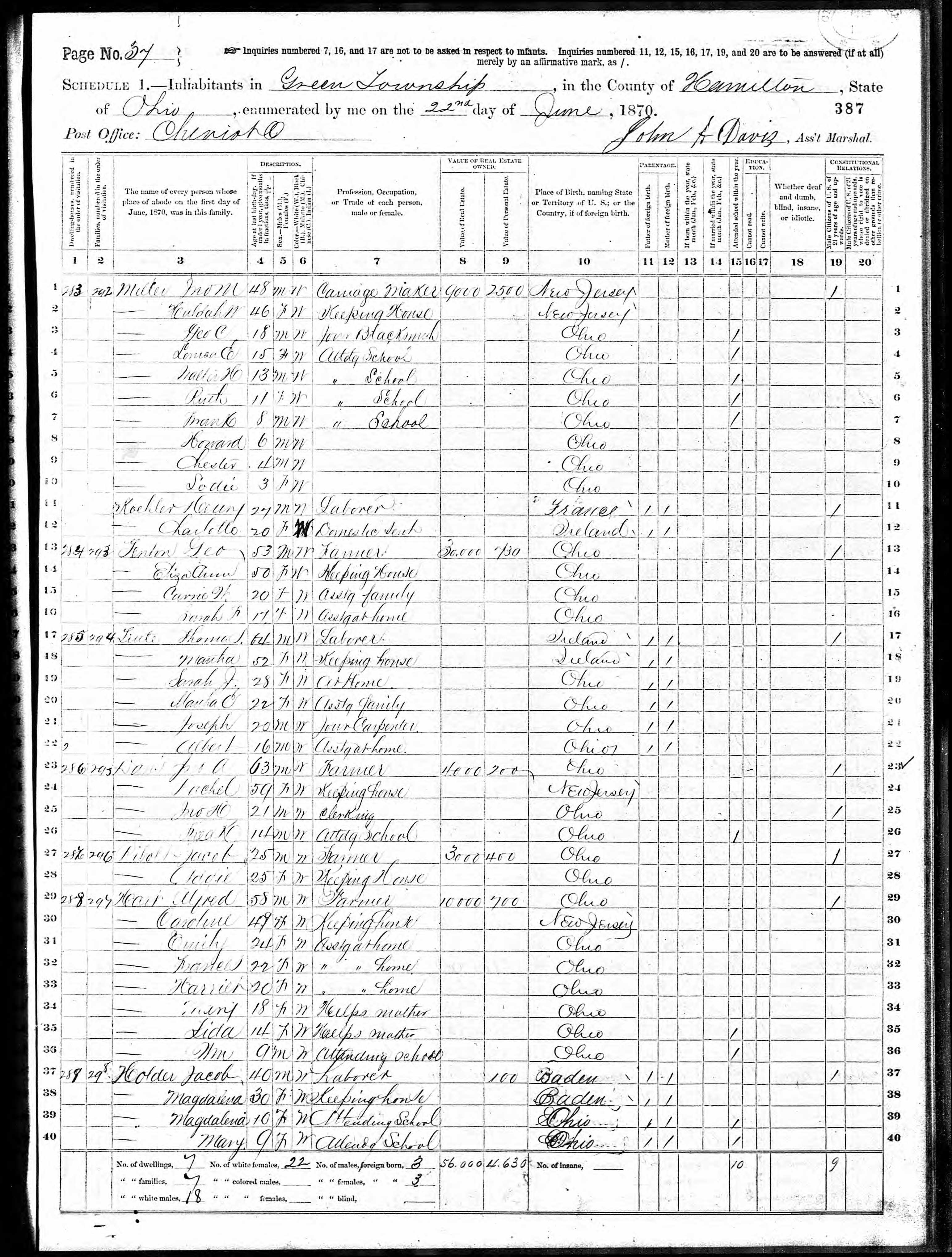 1870 - Green, Hamilton, Ohio