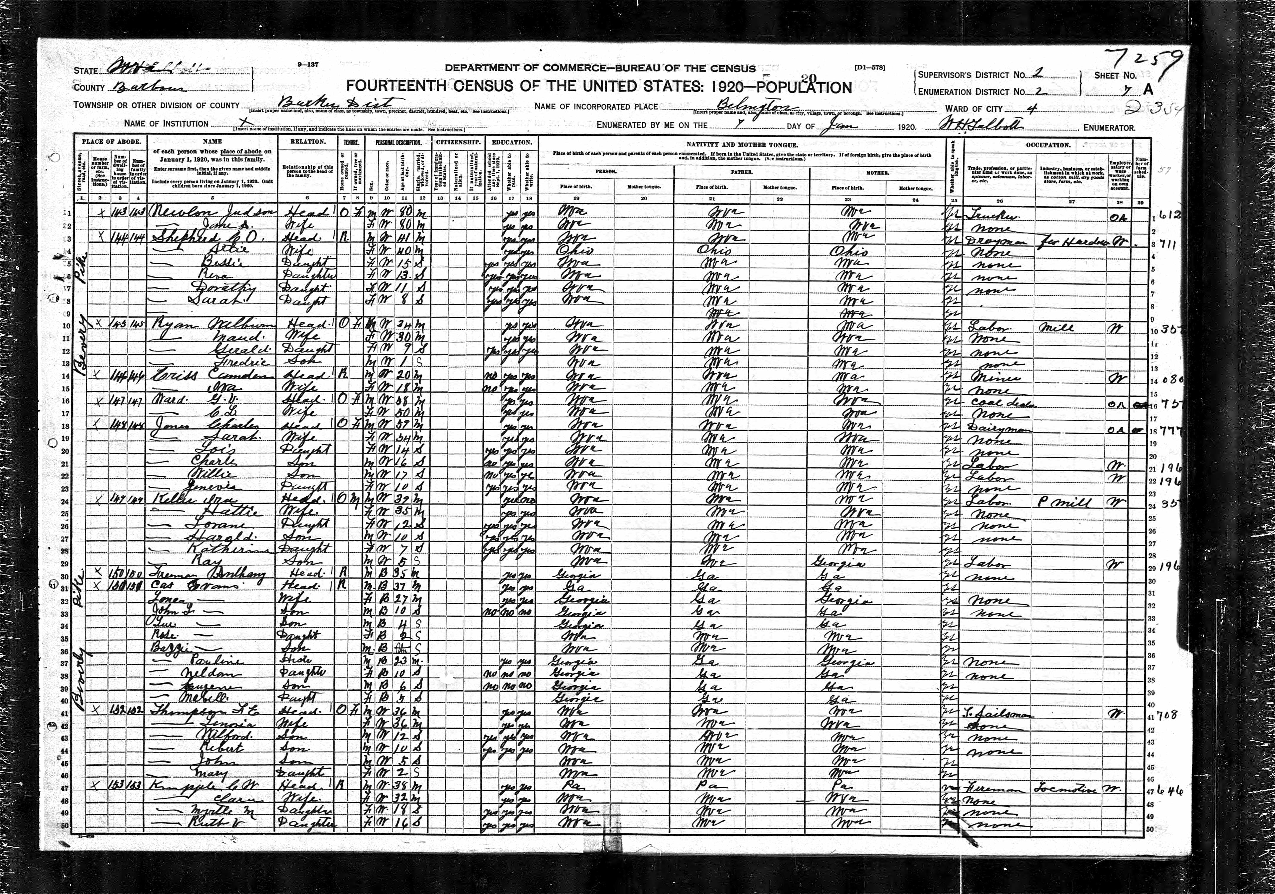 Residences1839 - Randolph County, Virginia | 1850 - Barbour, Virginia 1860 - Barbour, Virginia 1870 - Phillippi, Barbour, West Virginia 1880 - Phillippi, Barbour, West Virginia | 1900 - Barker, Barbour, West Virginia | 1910 - Belington, Barbour, West Virginia 1920 - Barker, Barbour, West Virginia 1923 - Belington, Barbour, West Virginia |