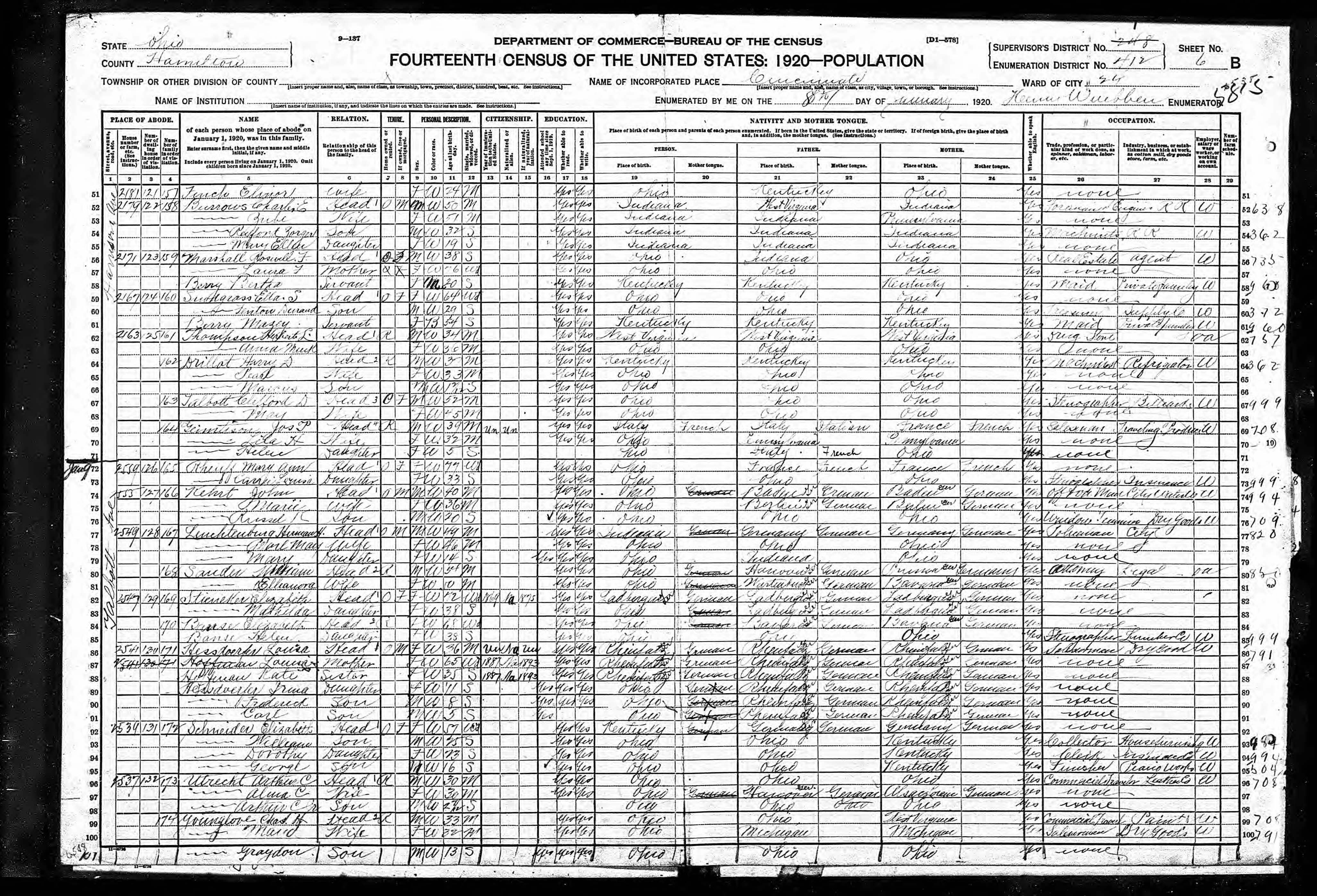Residences1885 - Phillippi, Barbour, West Virginia | 1900 - Athens, Athens, Ohio 1910 - Norwood, Hamilton, Ohio 1920 - Cincinnati, Hamilton, Ohio 1930 - Cincinnati, Hamilton, Ohio 1940 - Cinncinati, Hamilton, Ohio 1950 - Cincinnati, Hamilton, Ohio |