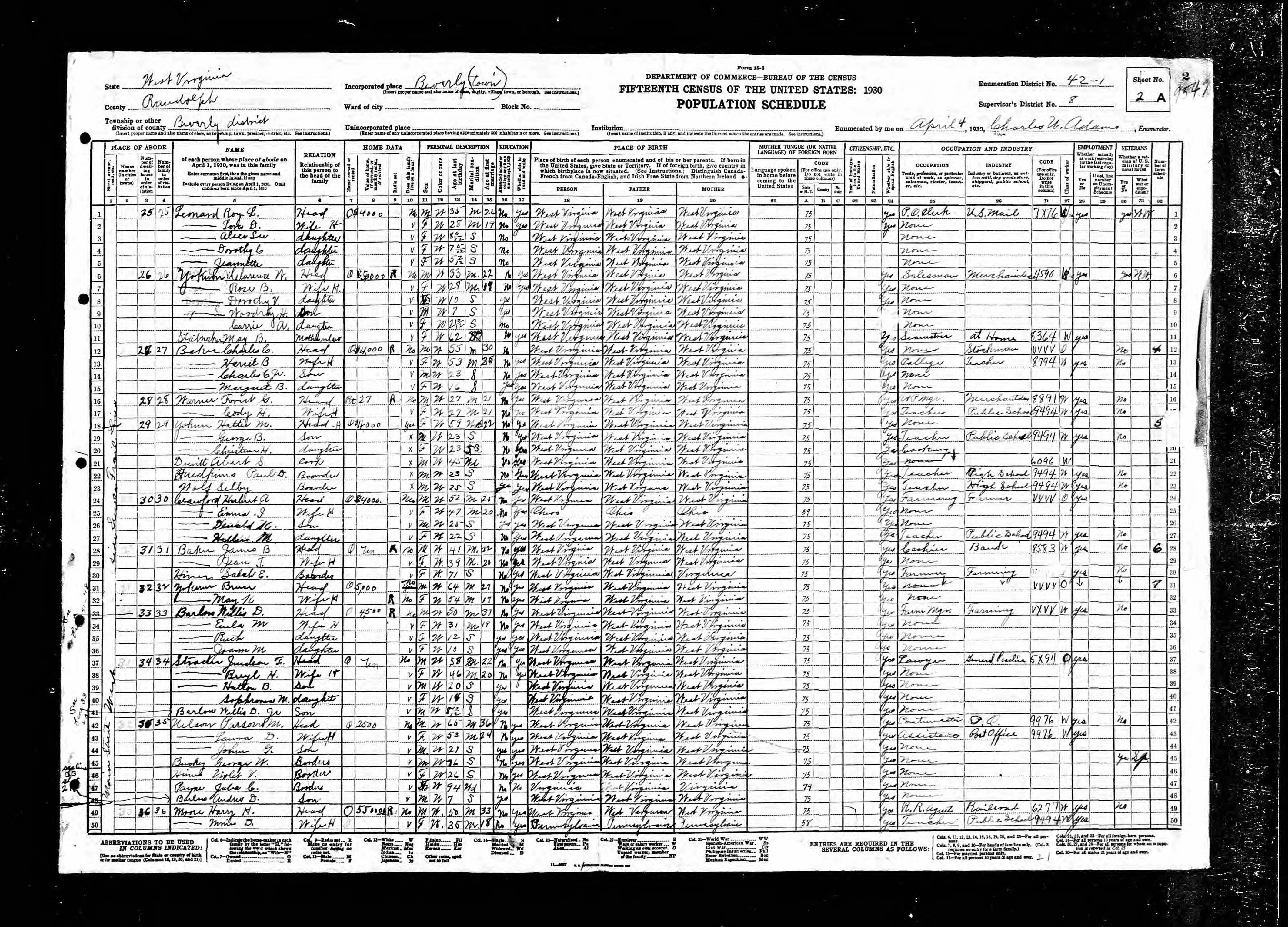 Residences1873 - Beverly, Randolph, West Virginia | 1880 - Beverly, Randolph, West Virginia 1900 - Beverly, Randolph, West Virginia 1910 - Clark, Harrison, West Virginia 1920 - Beverly, Randolph, West Virginia | 1930 - Beverly, Randolph, West Virginia | 1940 - Beverly, Randolph, West Virginia 1950 - Beverly, Randolph, West Virginia 1968 - Beverly, Randolph, West Virginia |