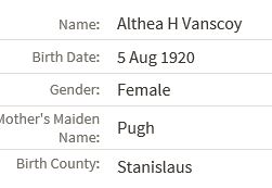Residences1920 - Modesto, Stanislaus, California | 1930 - Soledad, Monterey, California 1940 - Alisal, Monterey, California 1998 - Upper Lake, Lake, California, USA |