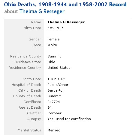 Residences1916 - New Castle, Lawrence, Pennsylvania | 1920 - Beverly, West Virginia 1930 - Akron, Ohio 1971 - Cleveland, Cuyahoga, Ohio |