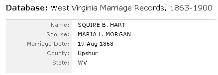 Residences1841 - Randolph County, Virginia | 1850 - Randolph, Virginia 1860 - Randolph, Virginia 1870 - Beverly, Randolph, West Virginia 1880 - Beverly, Randolph, West Virginia 1897 - Randolph County, West Virginia |