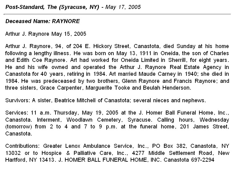 Residences1911 - Oneida, New York | 1920 - Oneida, Madison, New York 1930 - Oneida, Madison, New York 1940 - Oneida, Madison, New York 2005 - Canastota, Madison, New York |