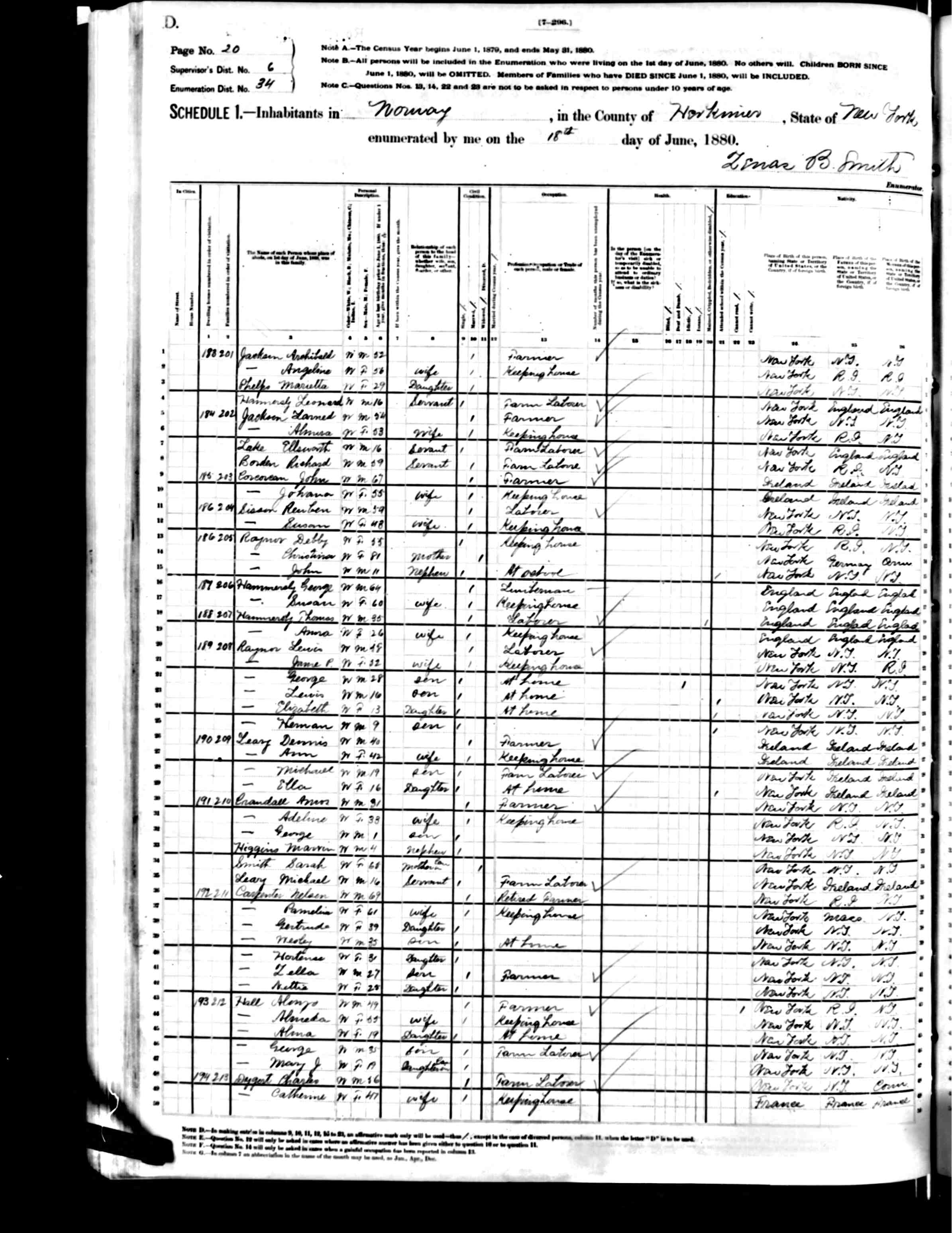 Residences1856 - New York | 1860 - Norway, Herkimer, New York 1880 - Lenox, Madison, New York 1900 - Lincoln, Madison, New York |