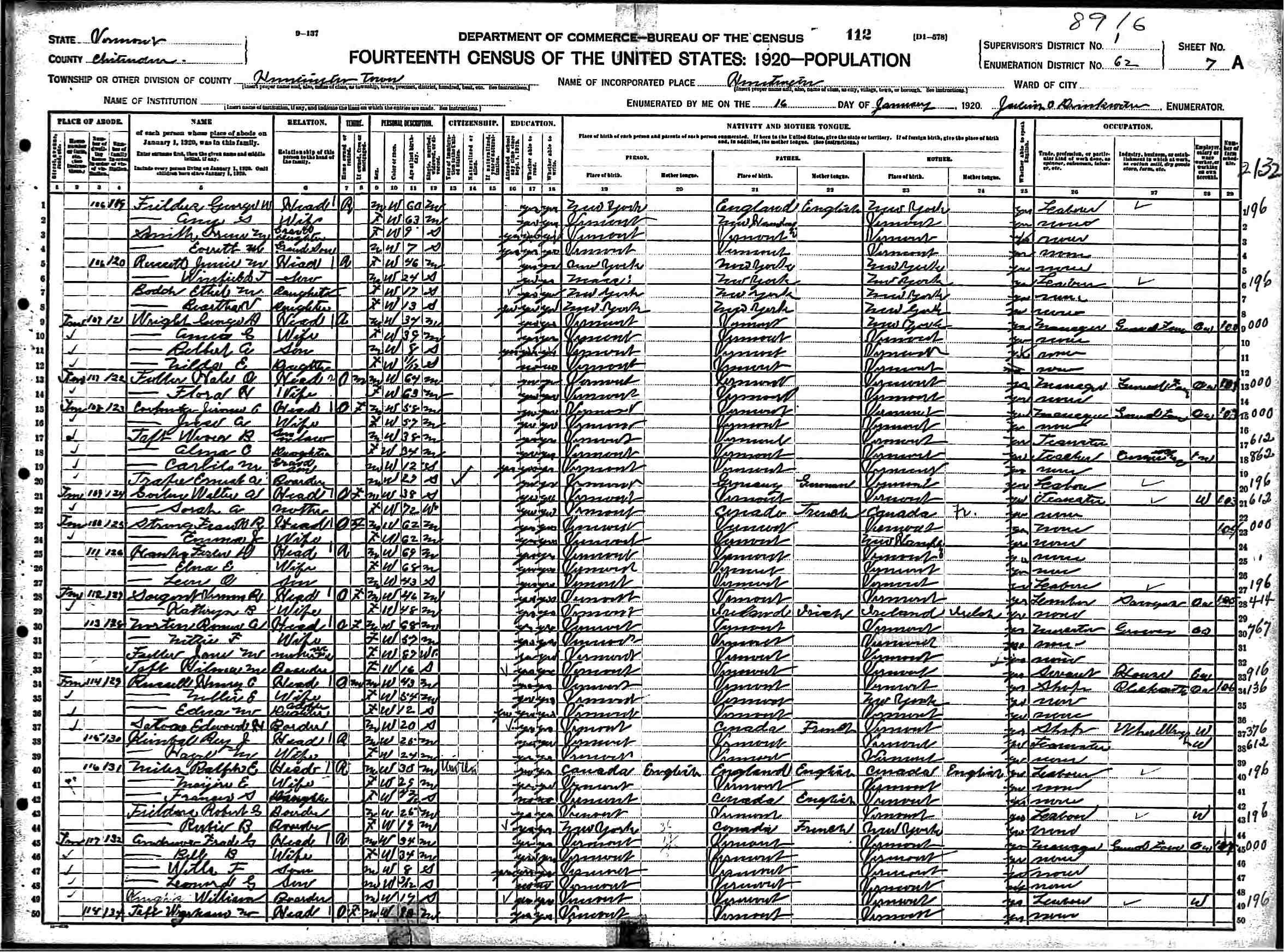 Residences1885 - Vermont | 1900 - Huntington, Chittenden, Vermont 1910 - Huntington, Chittenden, Vermont 1920 - Hinesburg, Chittenden, Vermont 1930 - Huntington, Chittenden, Vermont |